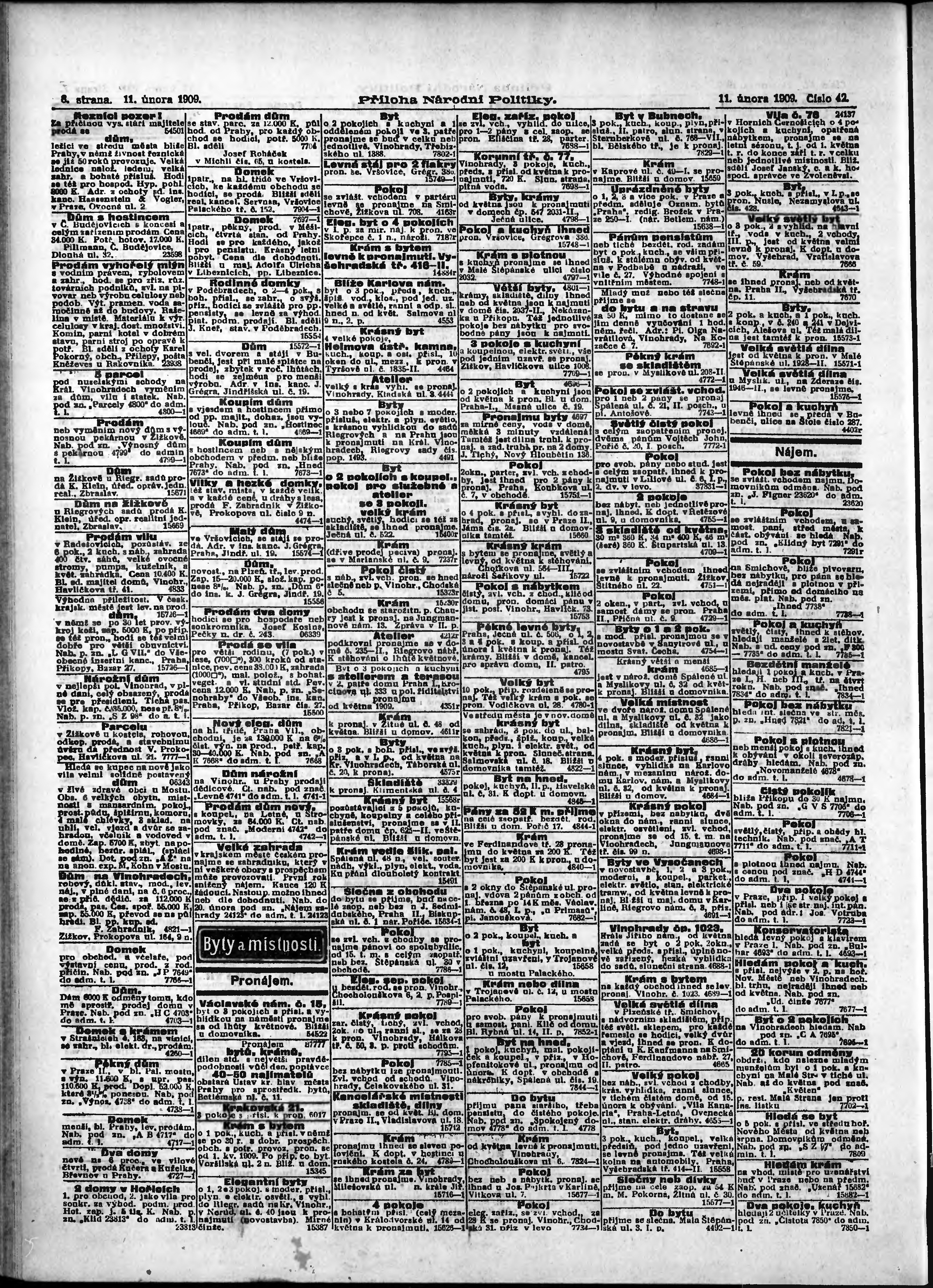 * Datum vydání výtisku: 11.2.1909 Číslo výtisku: 42 Typ výtisku: příloha