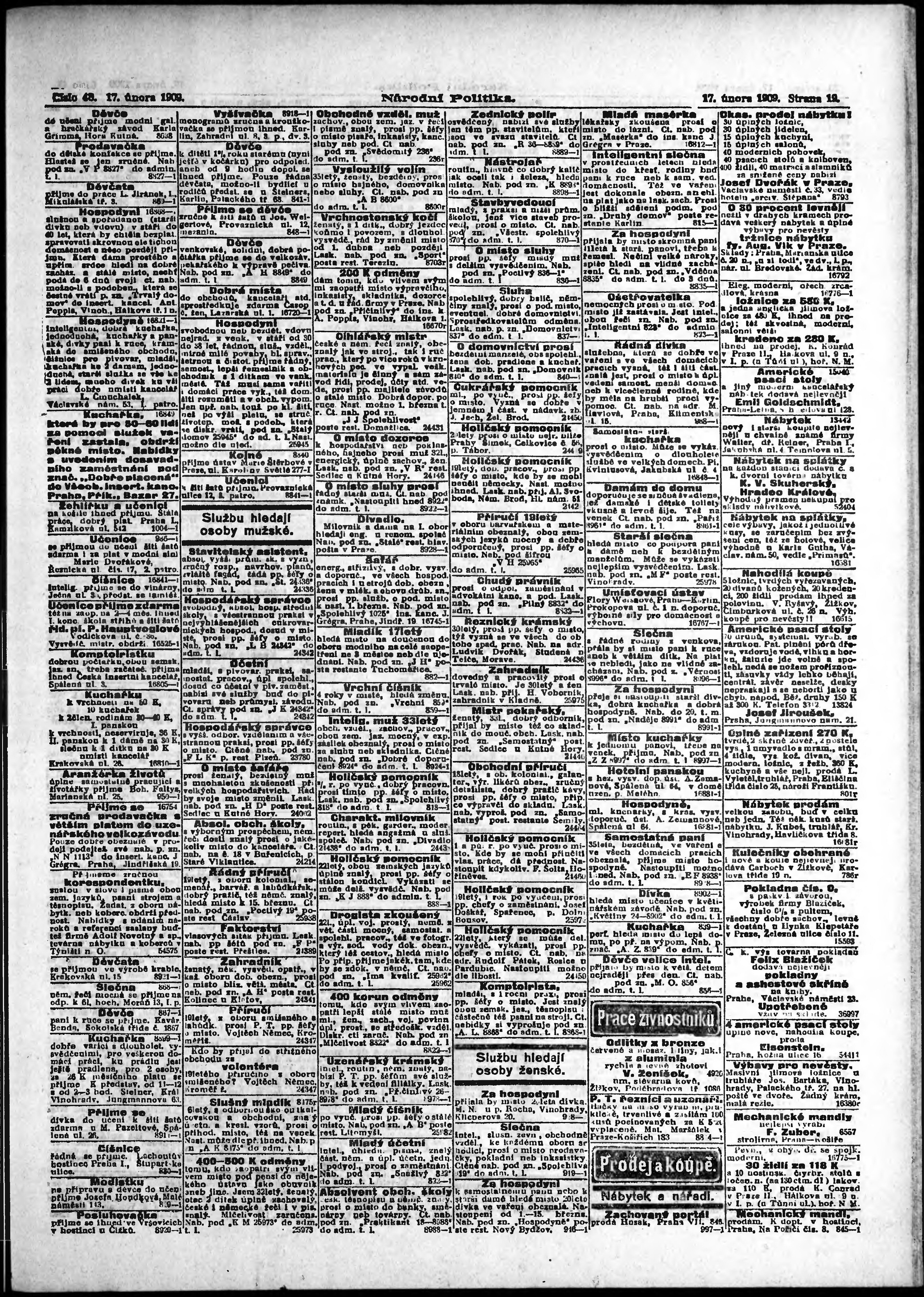 * Datum vydání výtisku: 17.2.1909 Číslo výtisku: 48