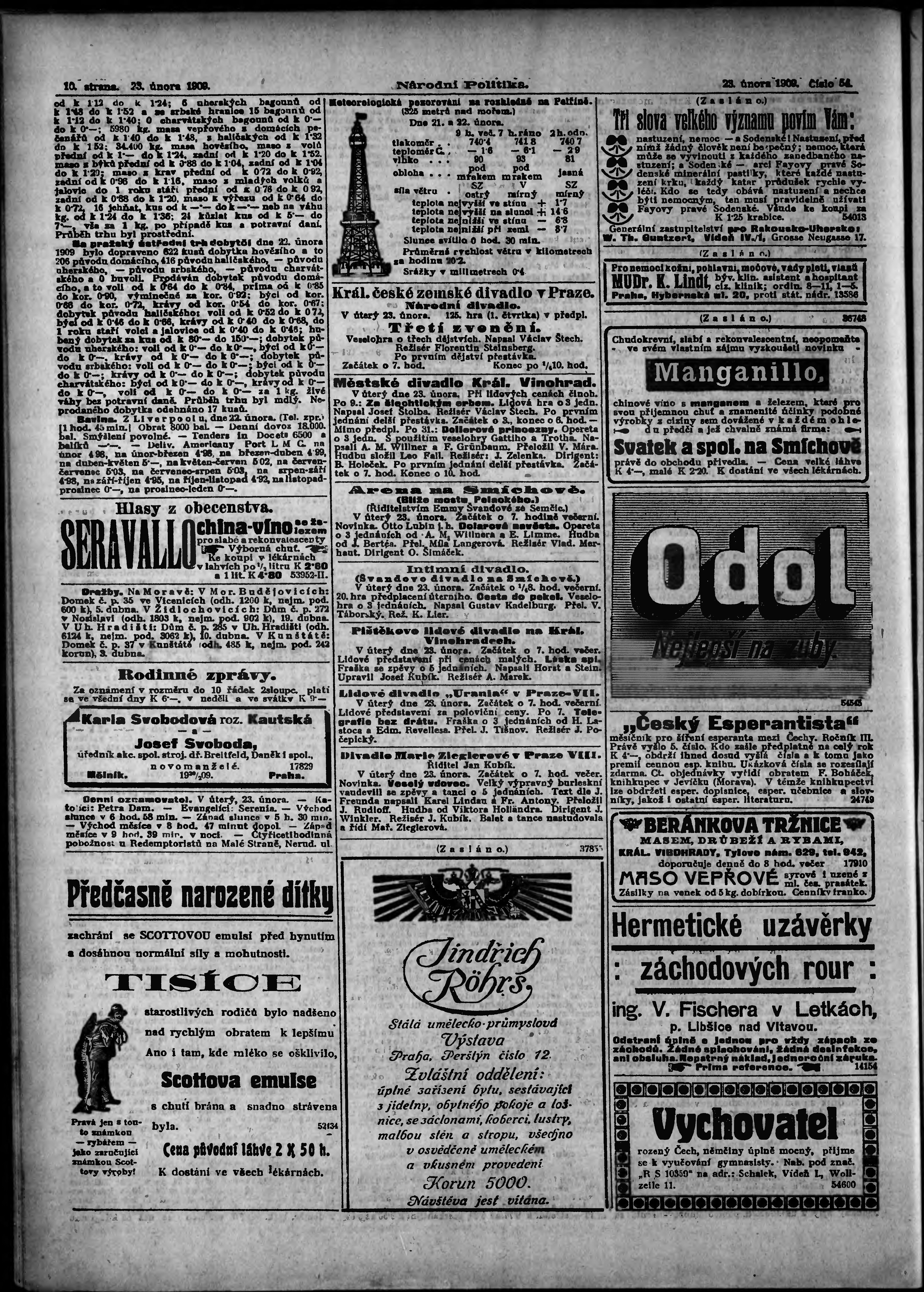 * Datum vydání výtisku: 23.2.1909 Číslo výtisku: 54