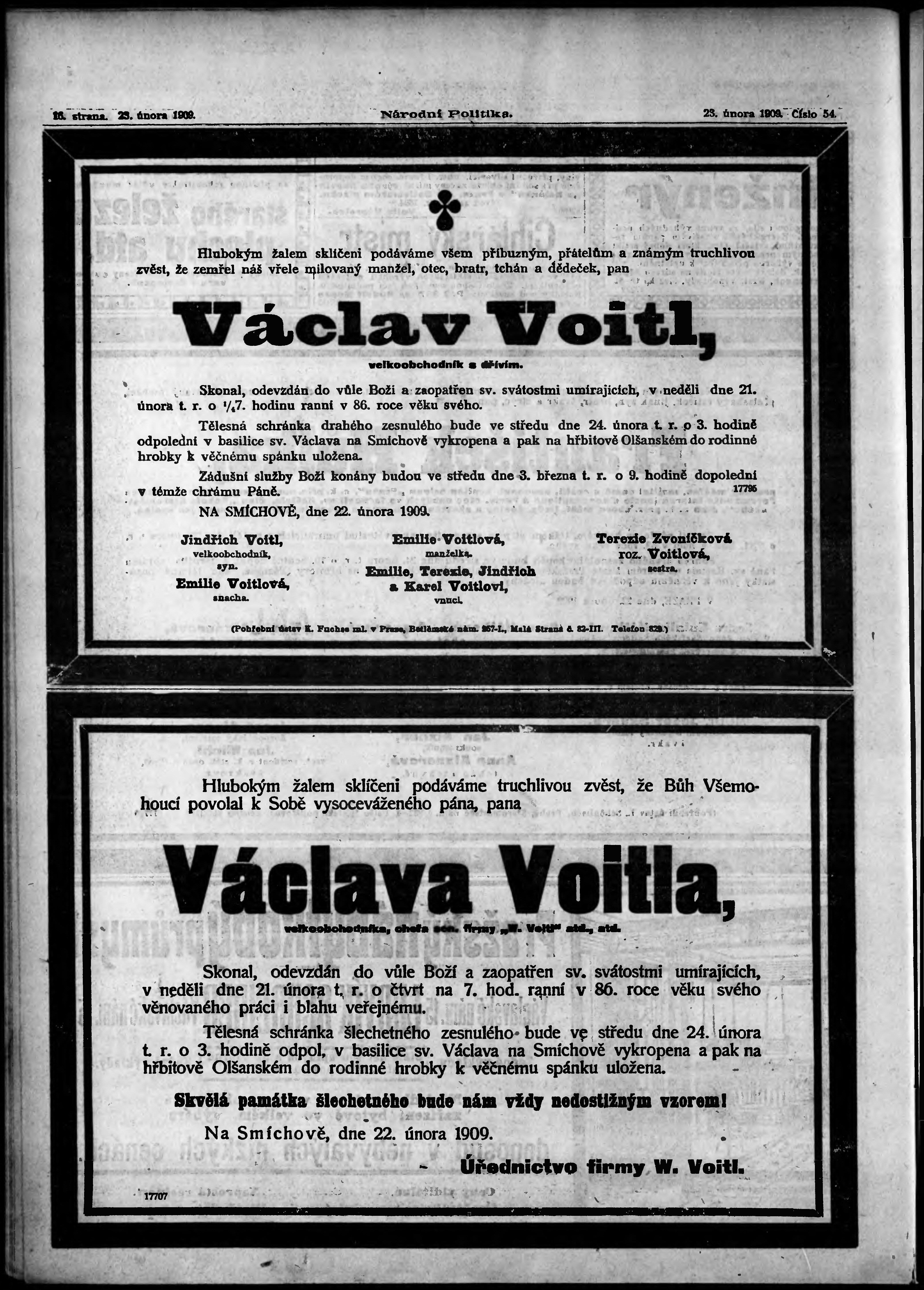 * Datum vydání výtisku: 23.2.1909 Číslo výtisku: 54