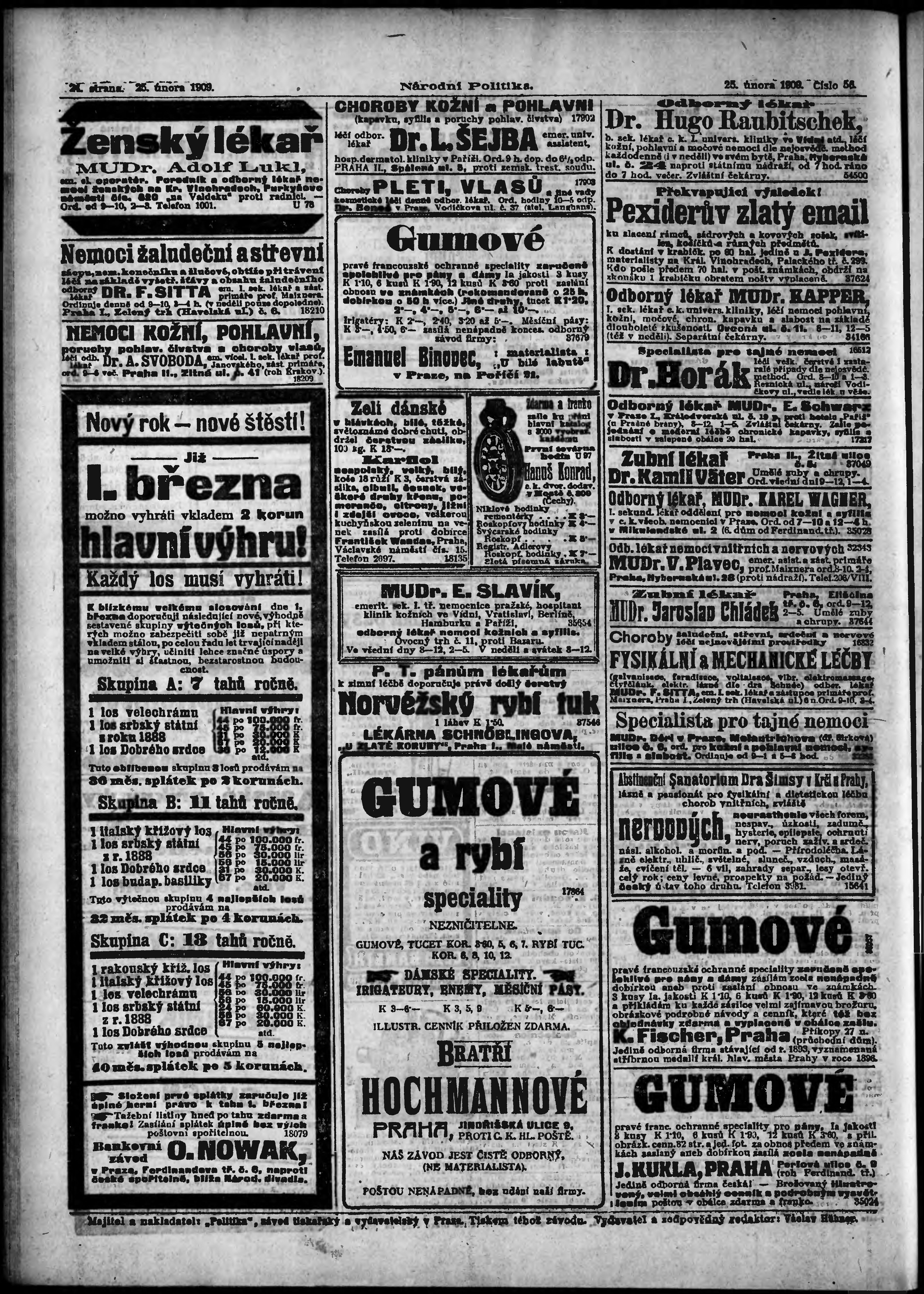 * Datum vydání výtisku: 25.2.1909 Číslo výtisku: 56