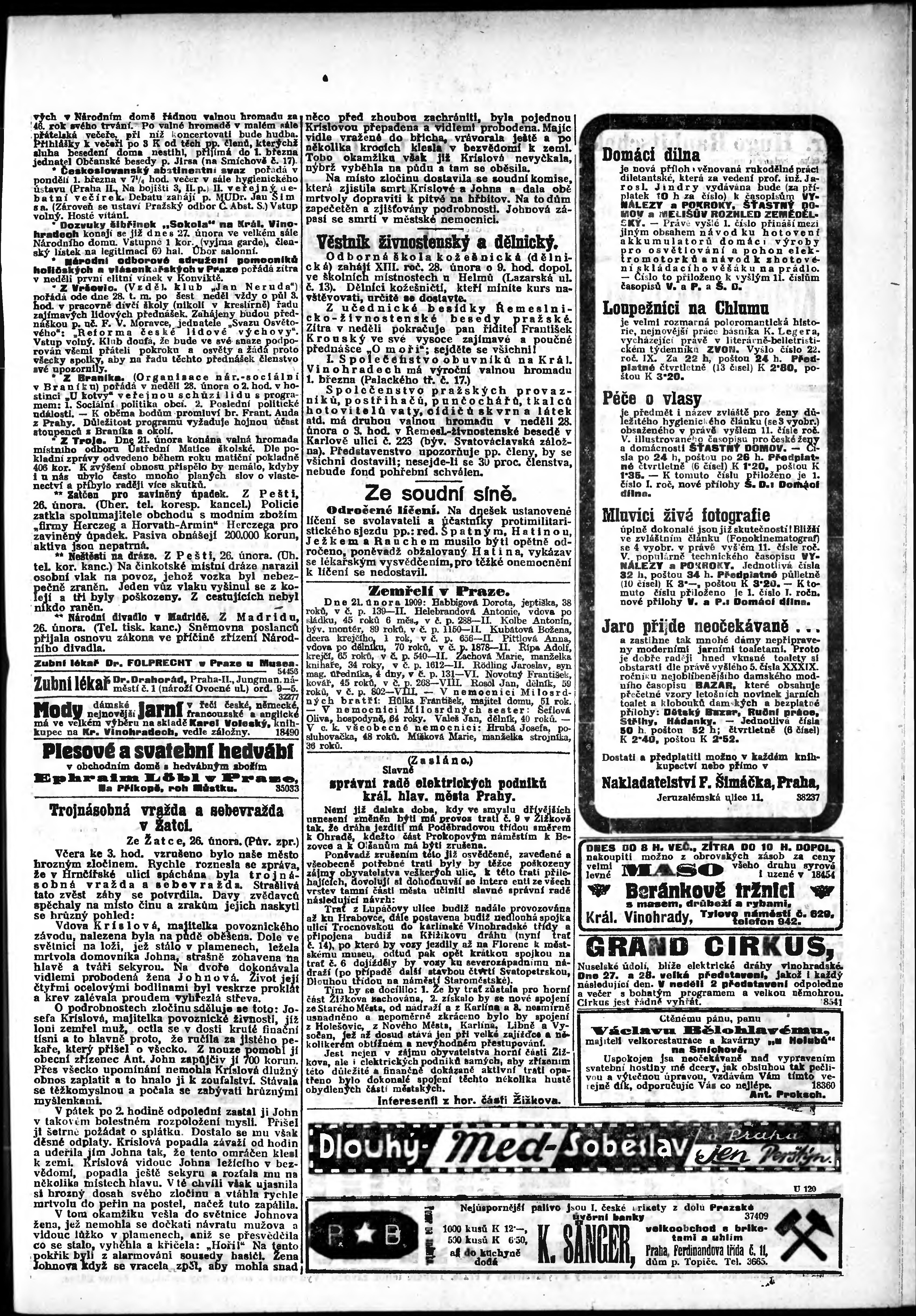 * Datum vydání výtisku: 27.2.1909 Číslo výtisku: 58 Poznámky k výtisku: odpolední vydání;