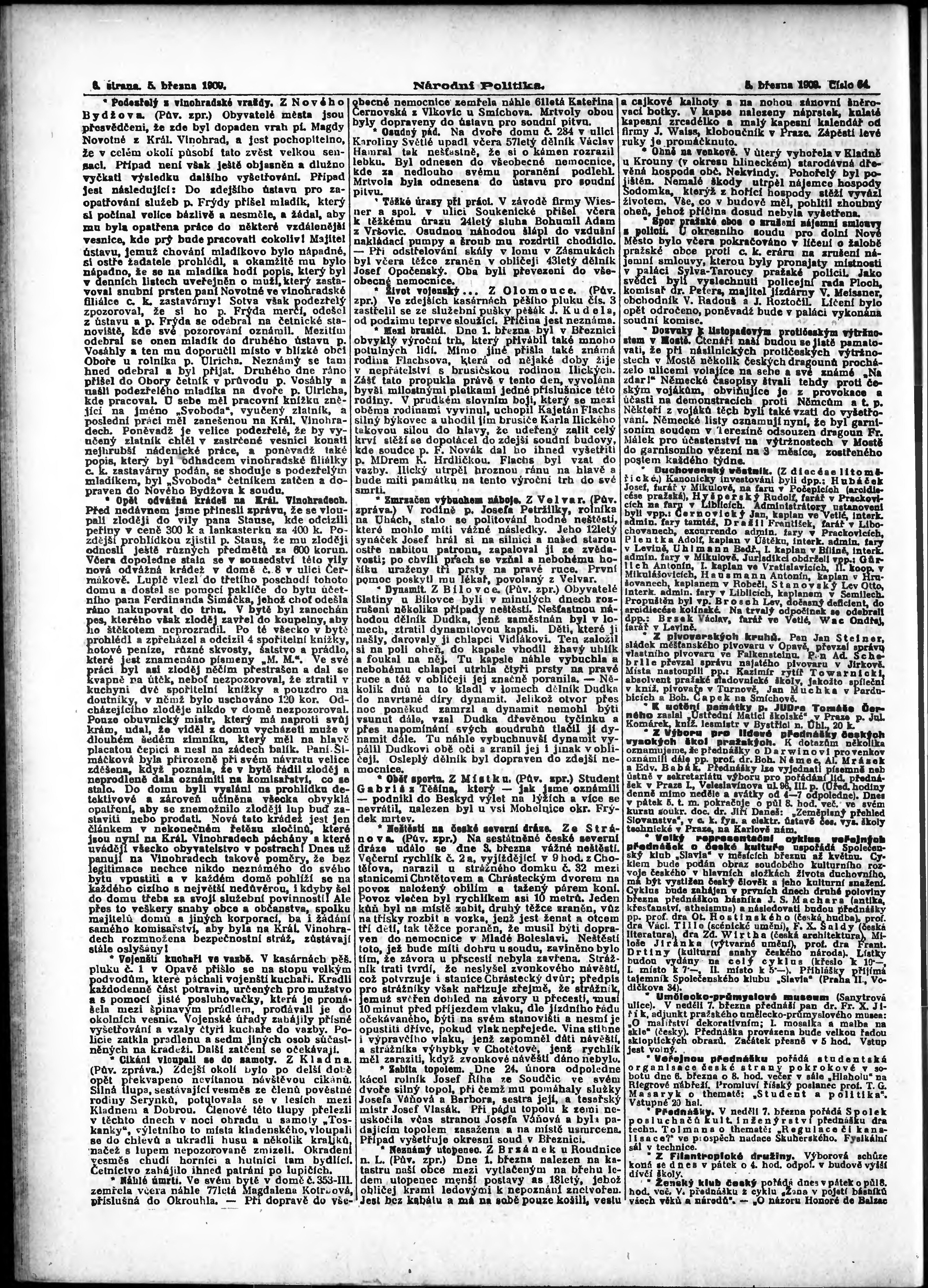 * Datum vydání výtisku: 5.3.1909 Číslo výtisku: 64