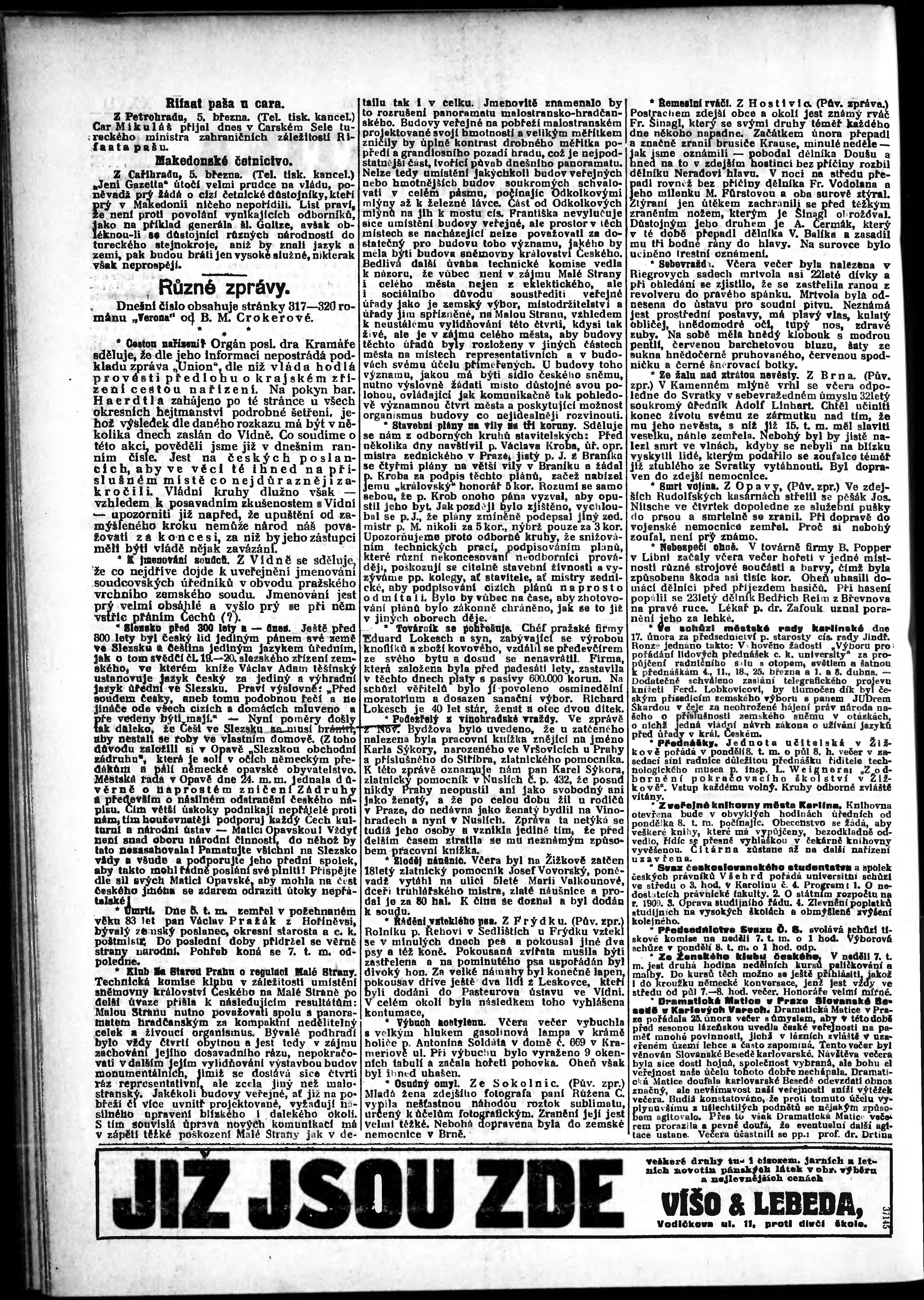 * Datum vydání výtisku: 6.3.1909 Číslo výtisku: 65 Poznámky k výtisku: odpolední vydání;