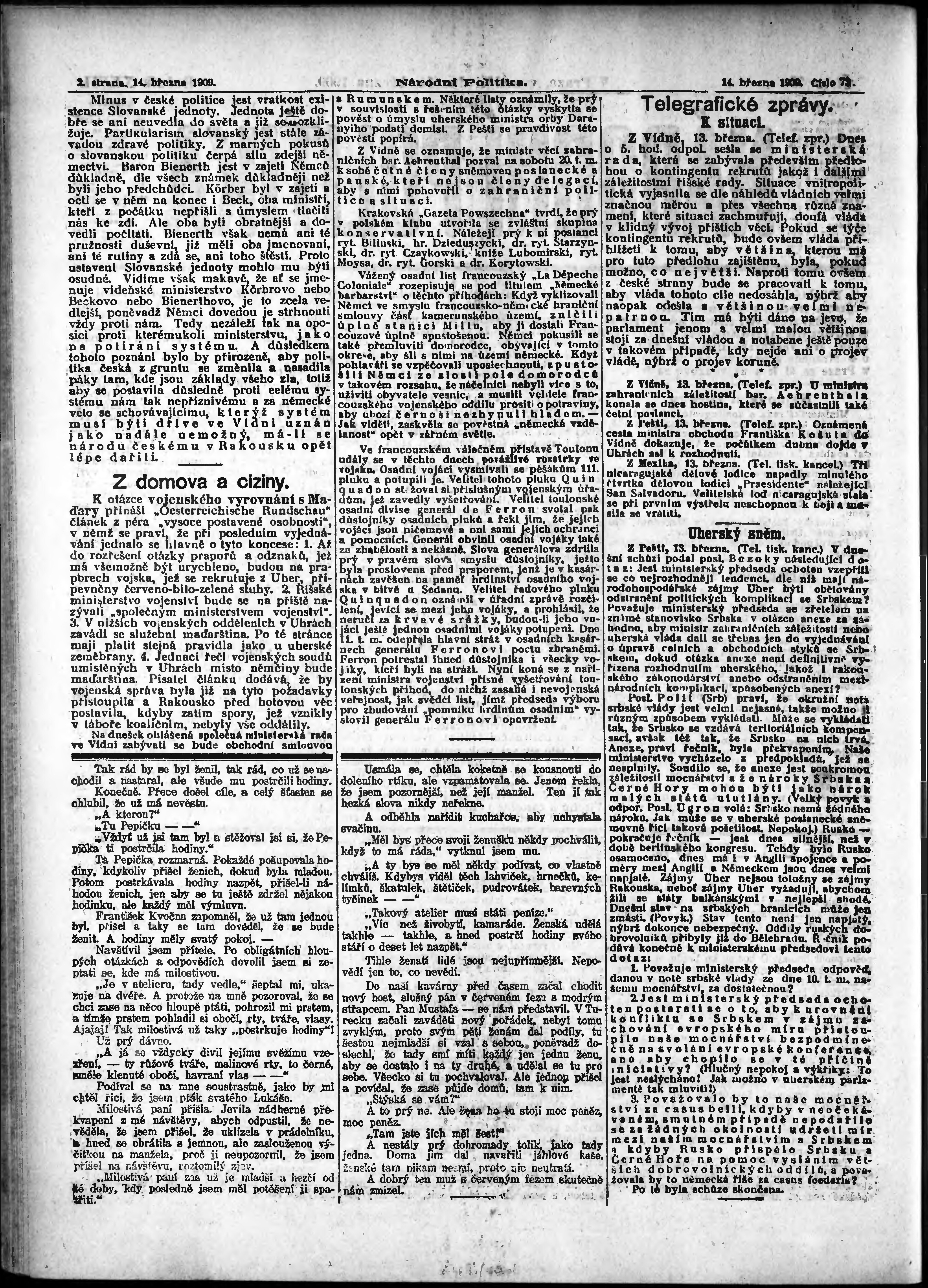 * Datum vydání výtisku: 14.3.1909 Číslo výtisku: 73