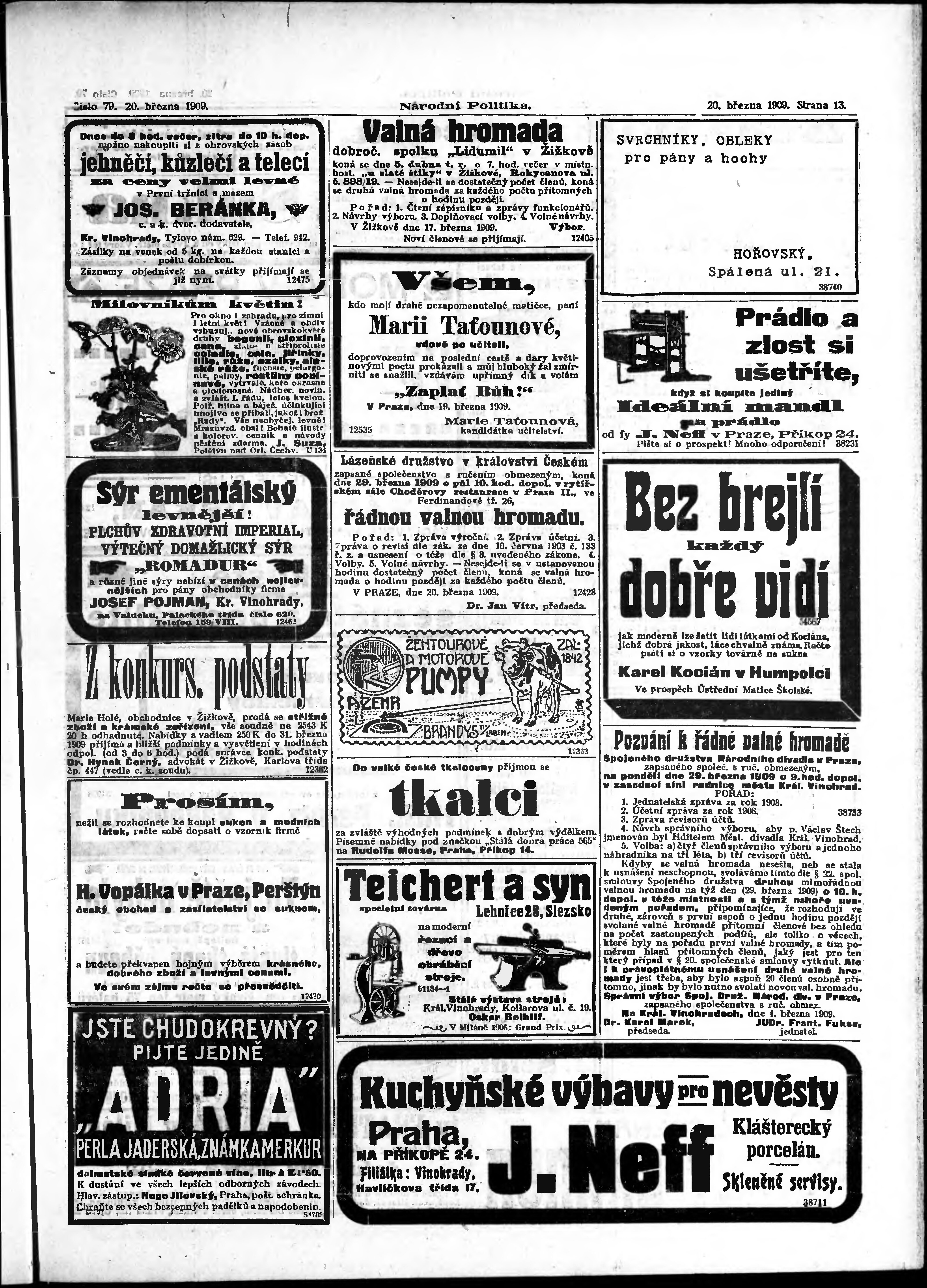 * Datum vydání výtisku: 20.3.1909 Číslo výtisku: 79 Poznámky k výtisku: s. 9 - 10 není k dispozici;