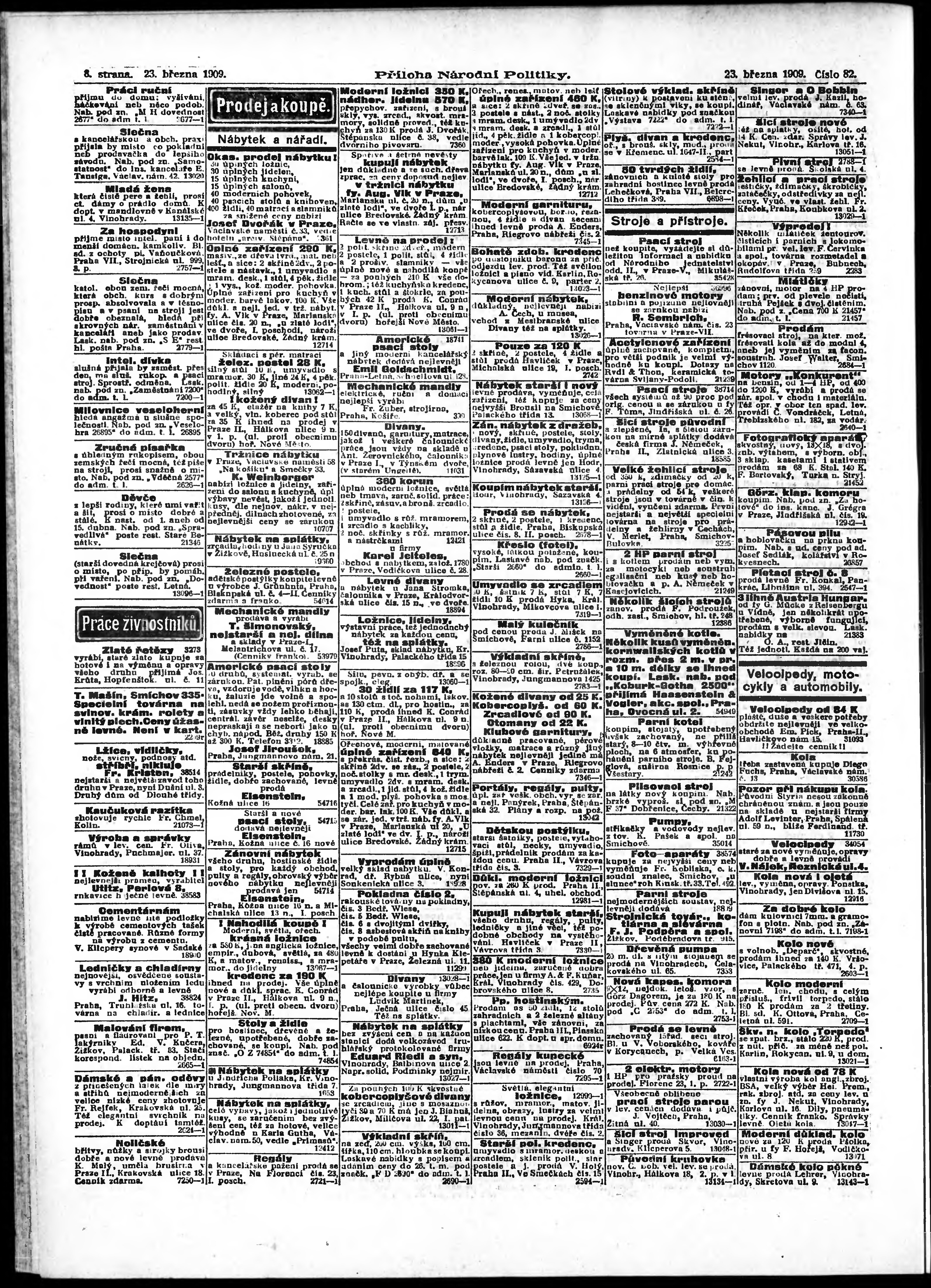 * Datum vydání výtisku: 23.3.1909 Číslo výtisku: 82 Typ výtisku: příloha
