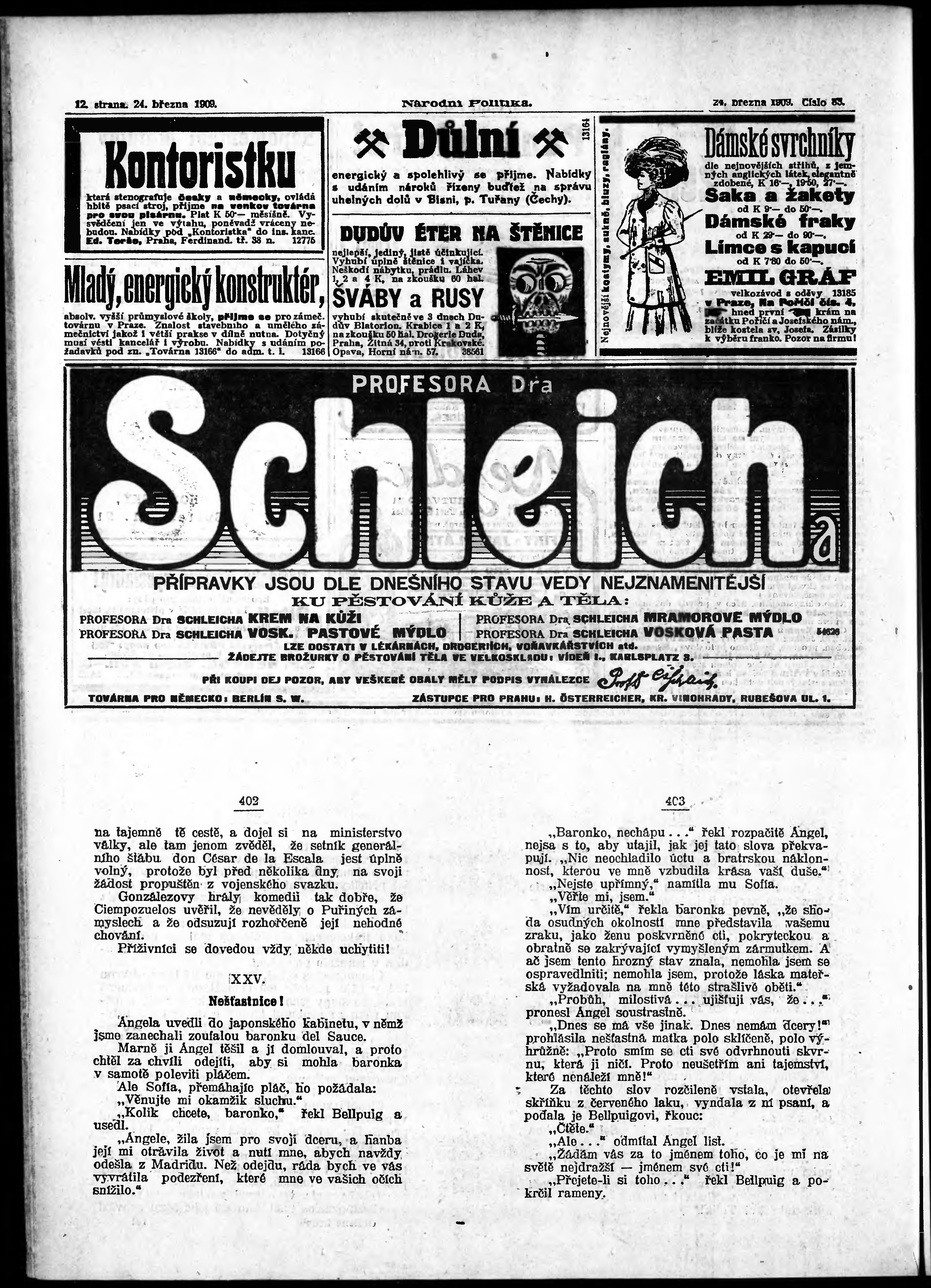 * Datum vydání výtisku: 24.3.1909 Číslo výtisku: 83