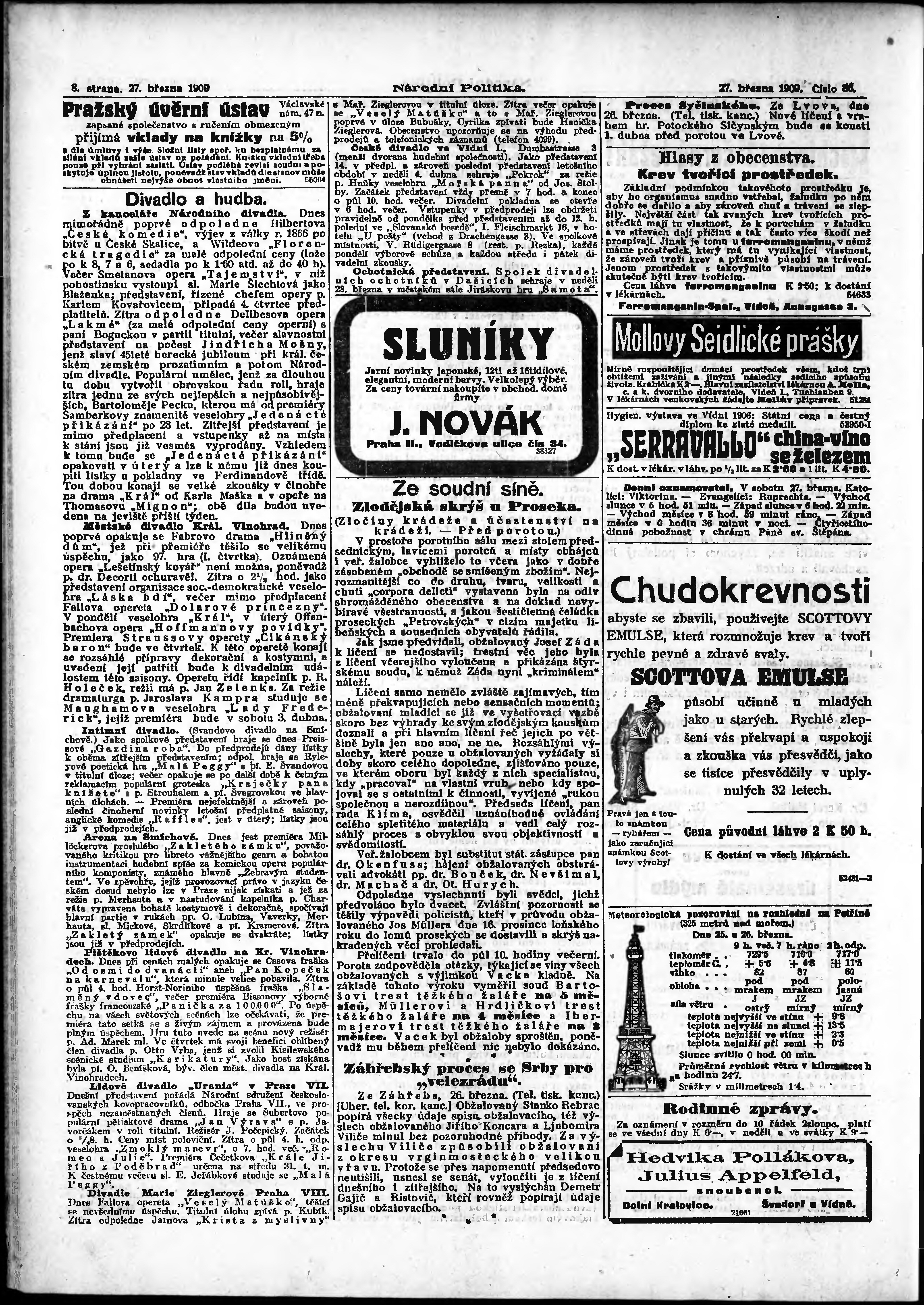 * Datum vydání výtisku: 27.3.1909 Číslo výtisku: 86