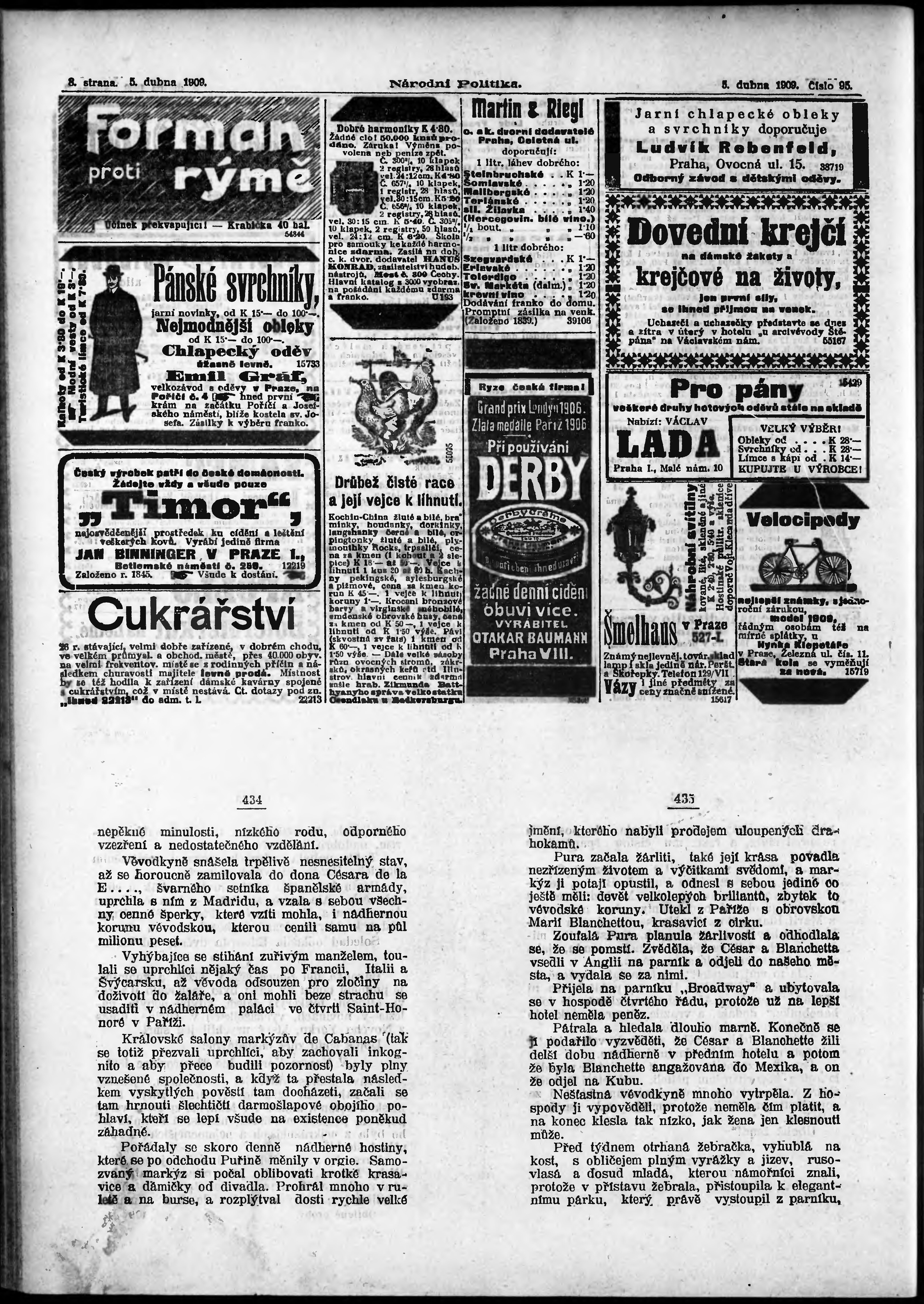 * Datum vydání výtisku: 5.4.1909 Číslo výtisku: 95