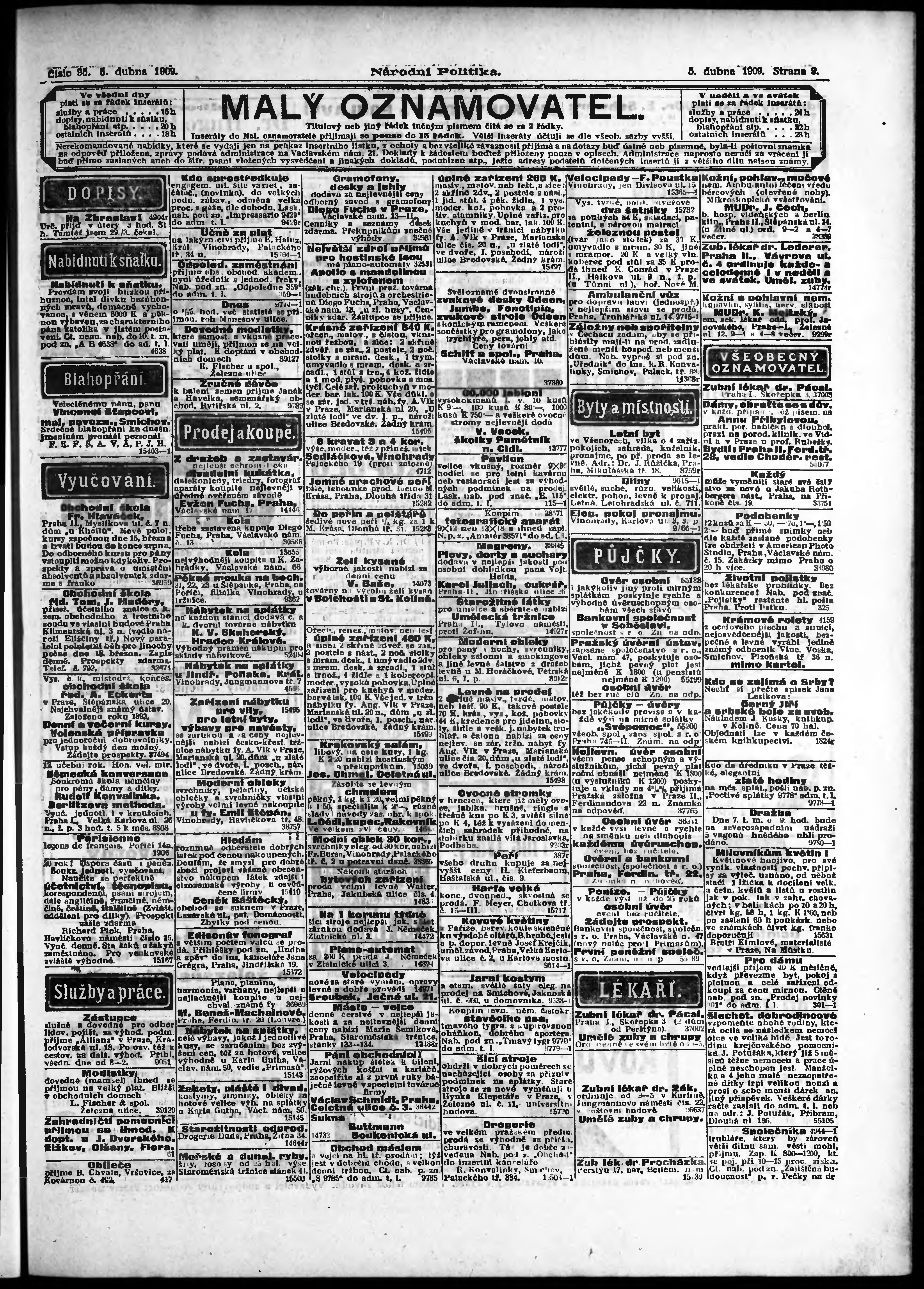 * Datum vydání výtisku: 5.4.1909 Číslo výtisku: 95
