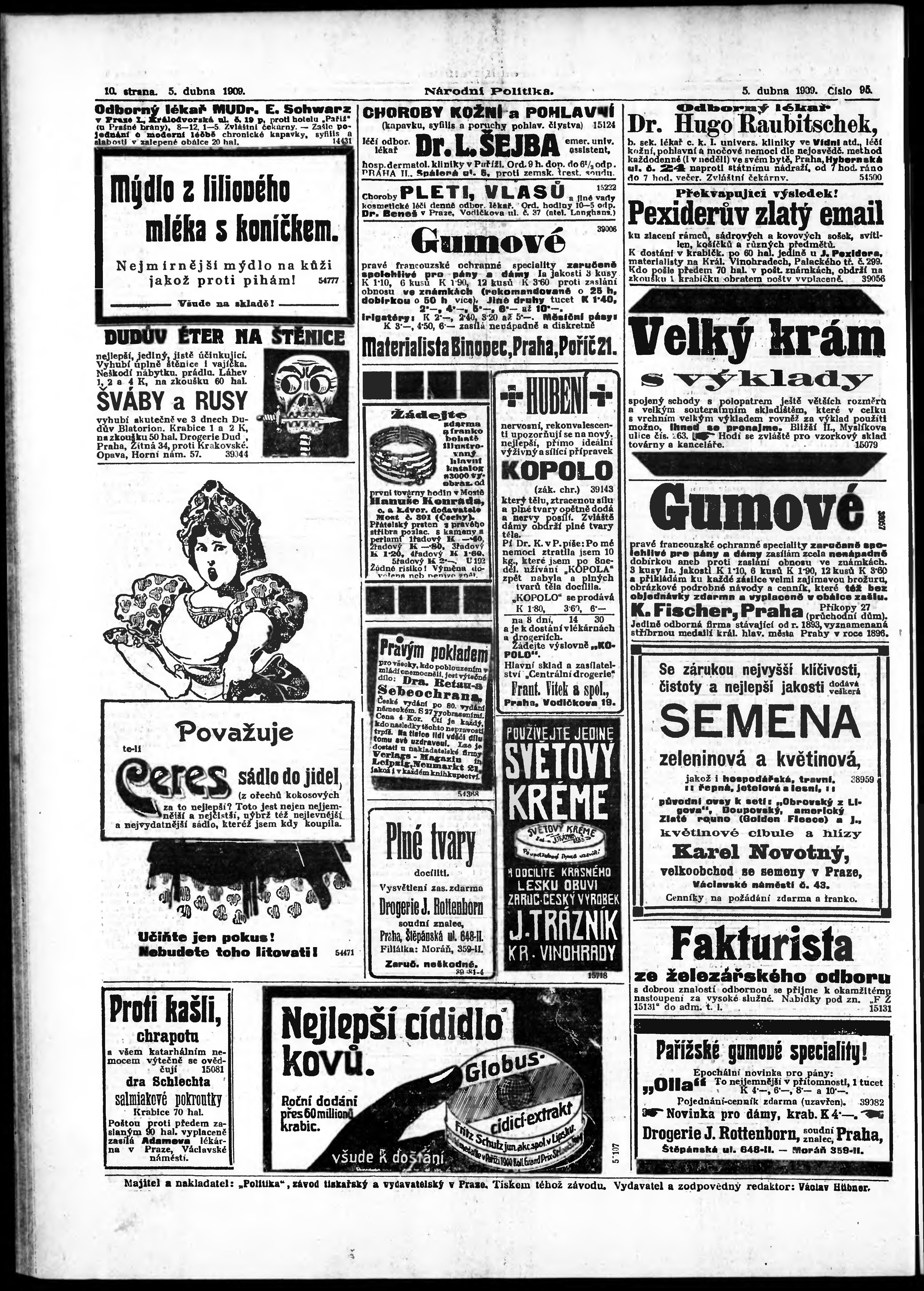 * Datum vydání výtisku: 5.4.1909 Číslo výtisku: 95
