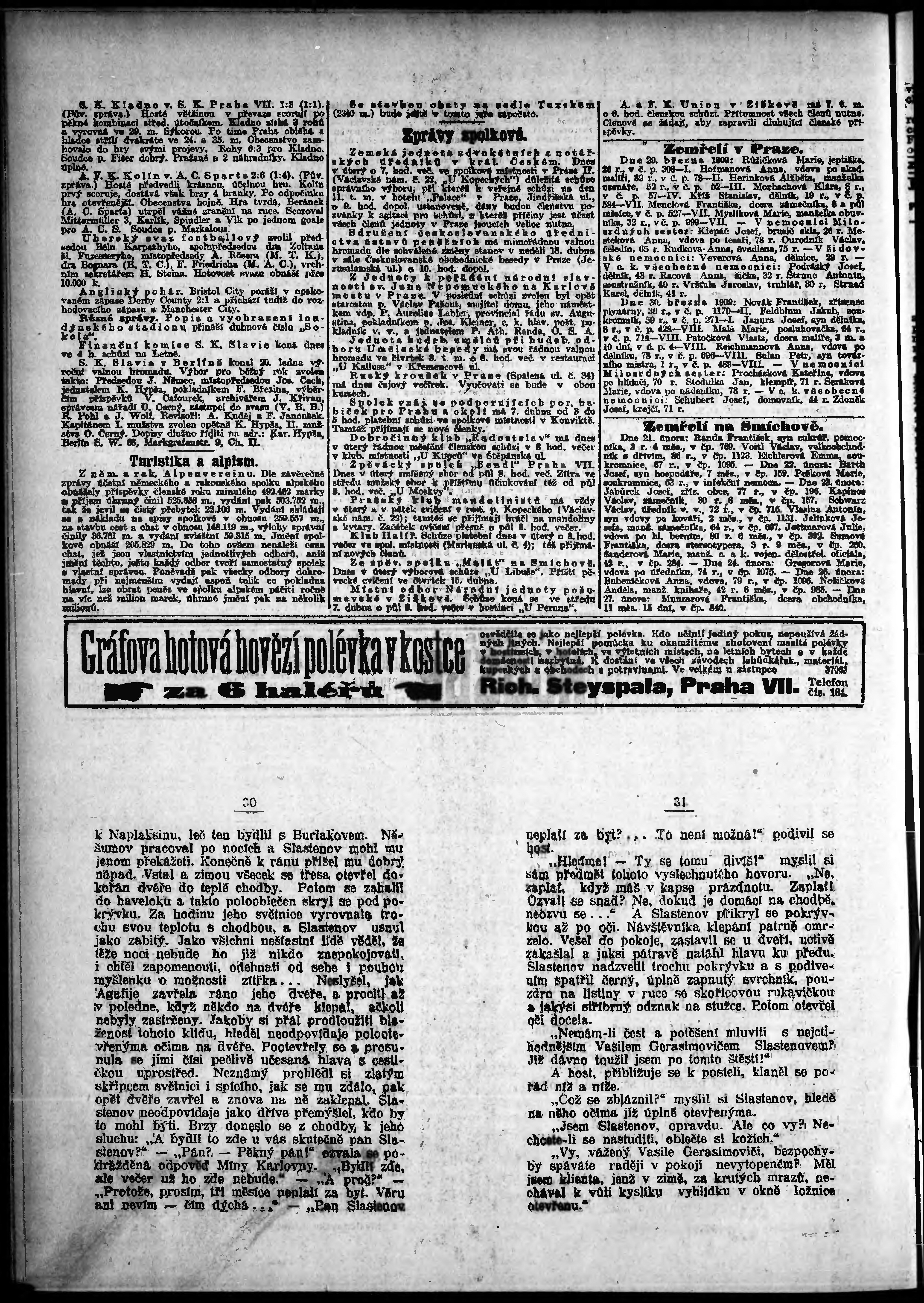 * Datum vydání výtisku: 6.4.1909 Číslo výtisku: 96 Poznámky k výtisku: odpolední vydání;