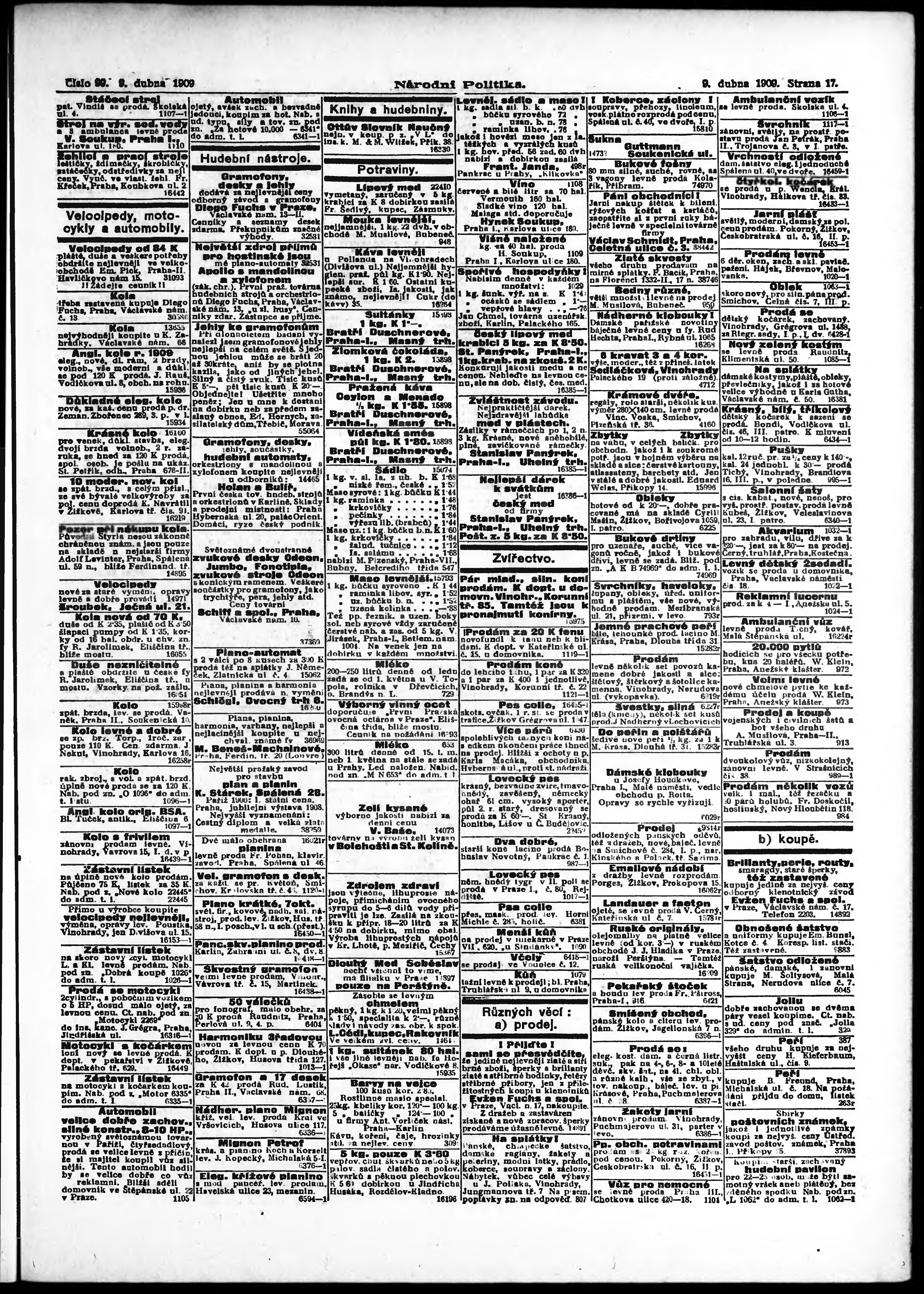 * Datum vydání výtisku: 9.4.1909 Číslo výtisku: 99