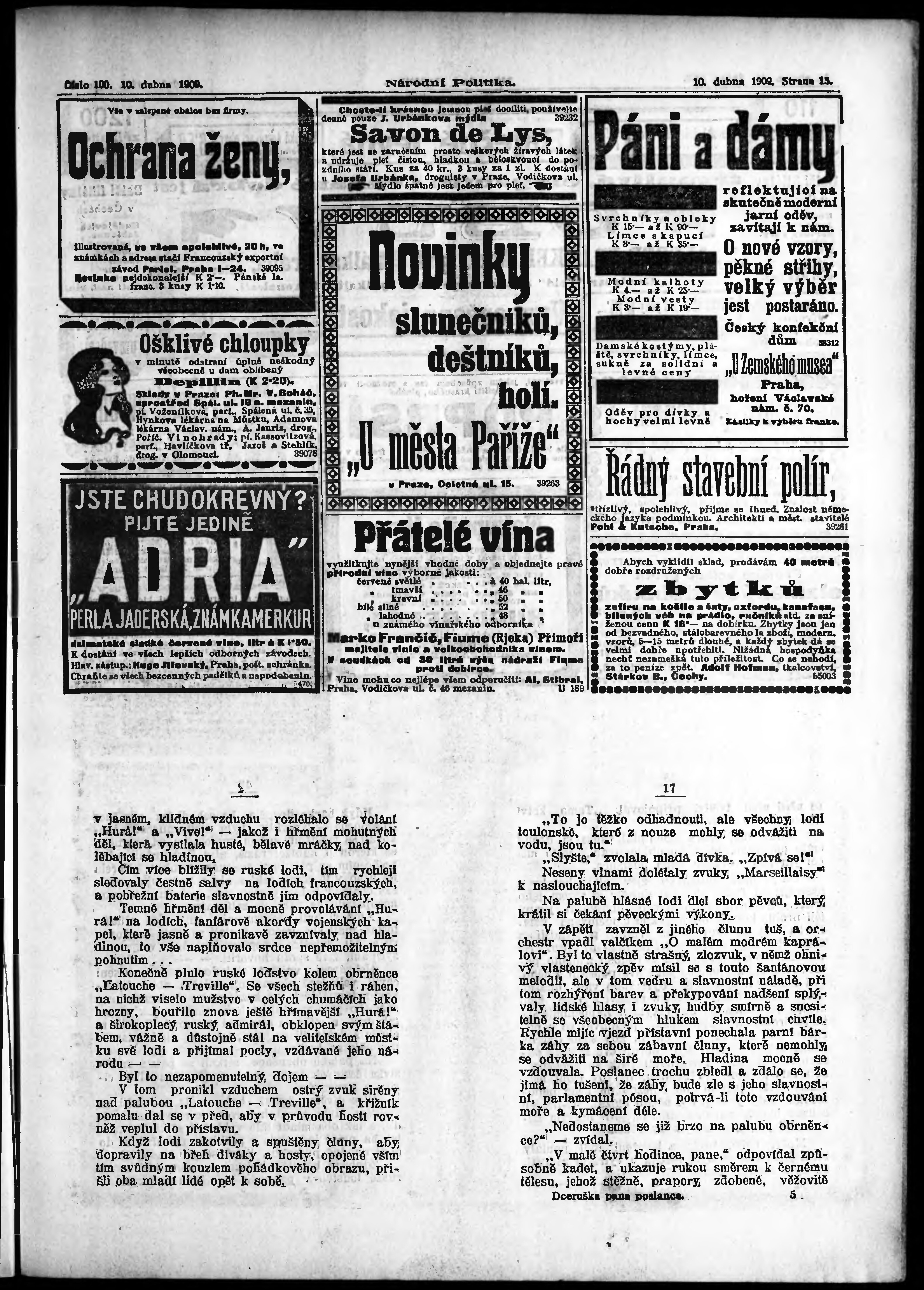 * Datum vydání výtisku: 10.4.1909 Číslo výtisku: 100