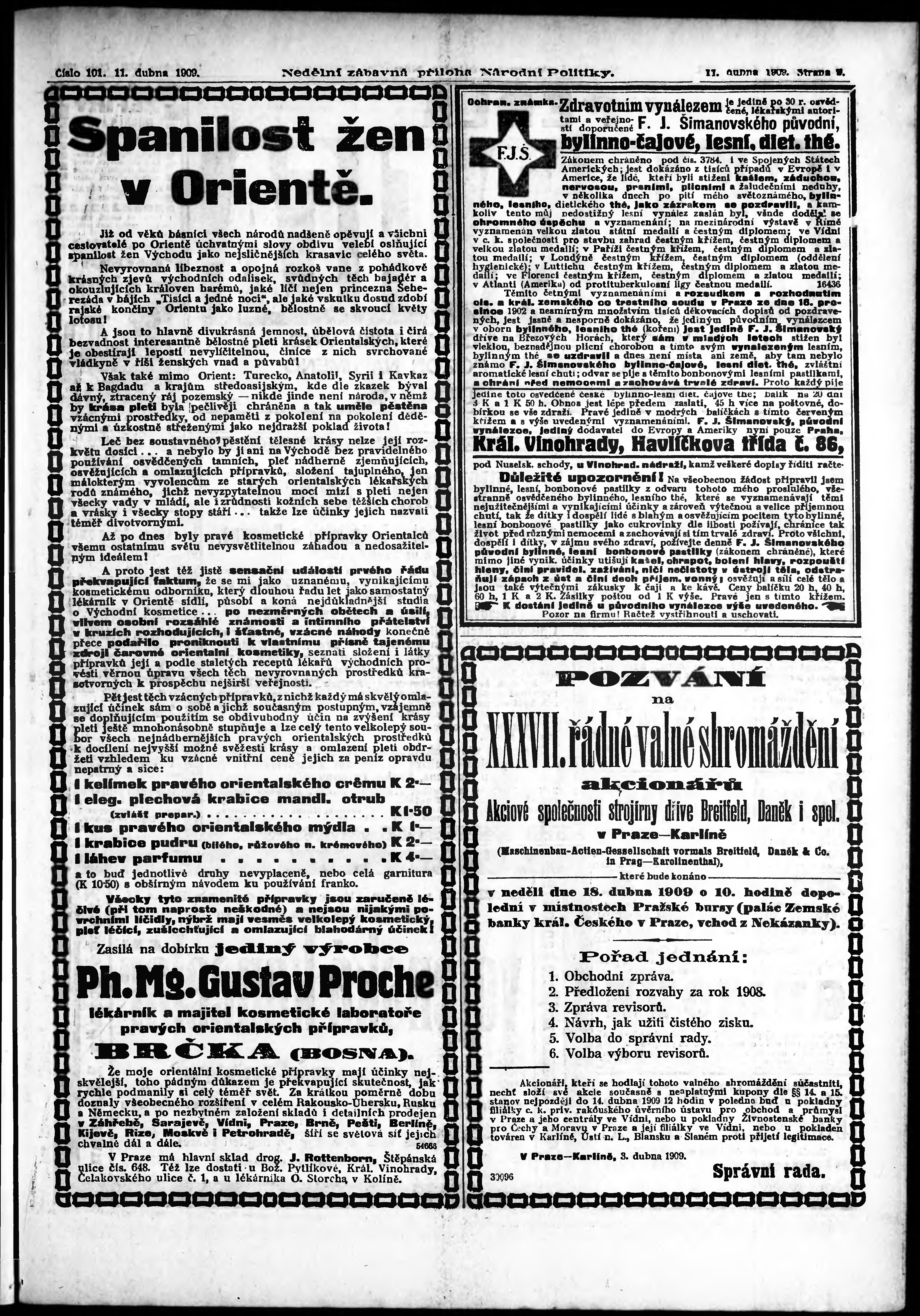 * Datum vydání výtisku: 11.4.1909 Číslo výtisku: 101 Typ výtisku: příloha