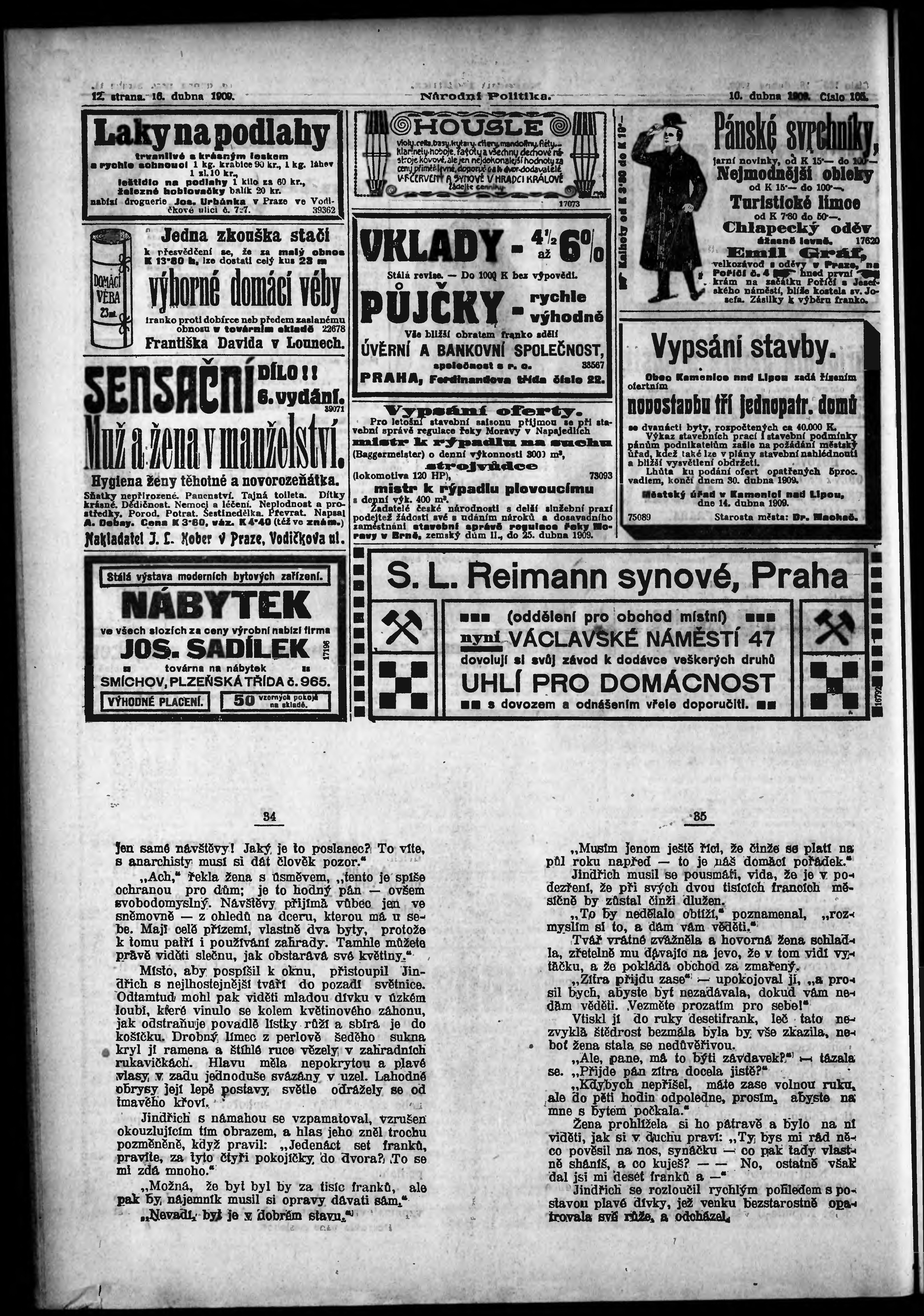 * Datum vydání výtisku: 16.4.1909 Číslo výtisku: 105