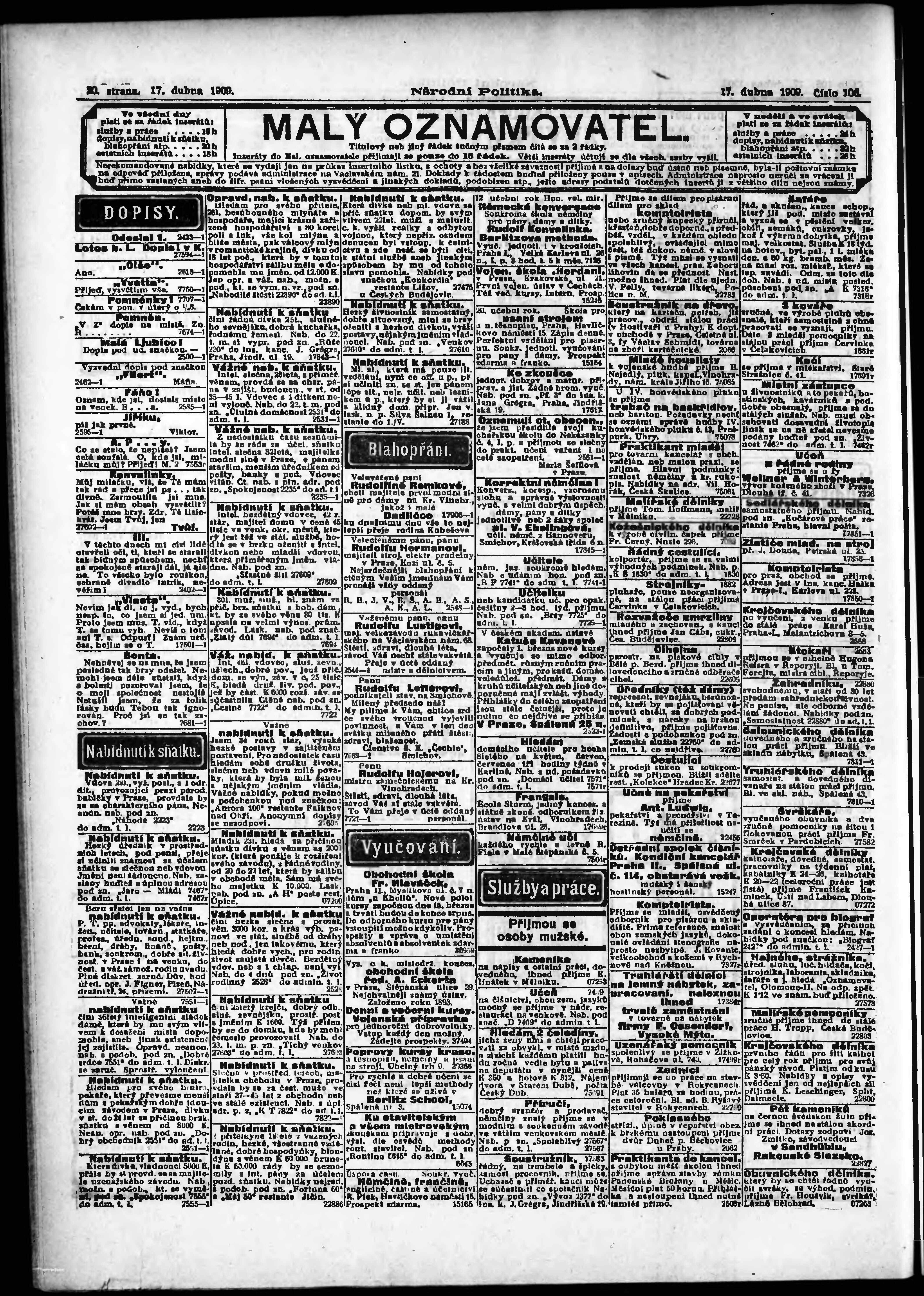 * Datum vydání výtisku: 17.4.1909 Číslo výtisku: 106