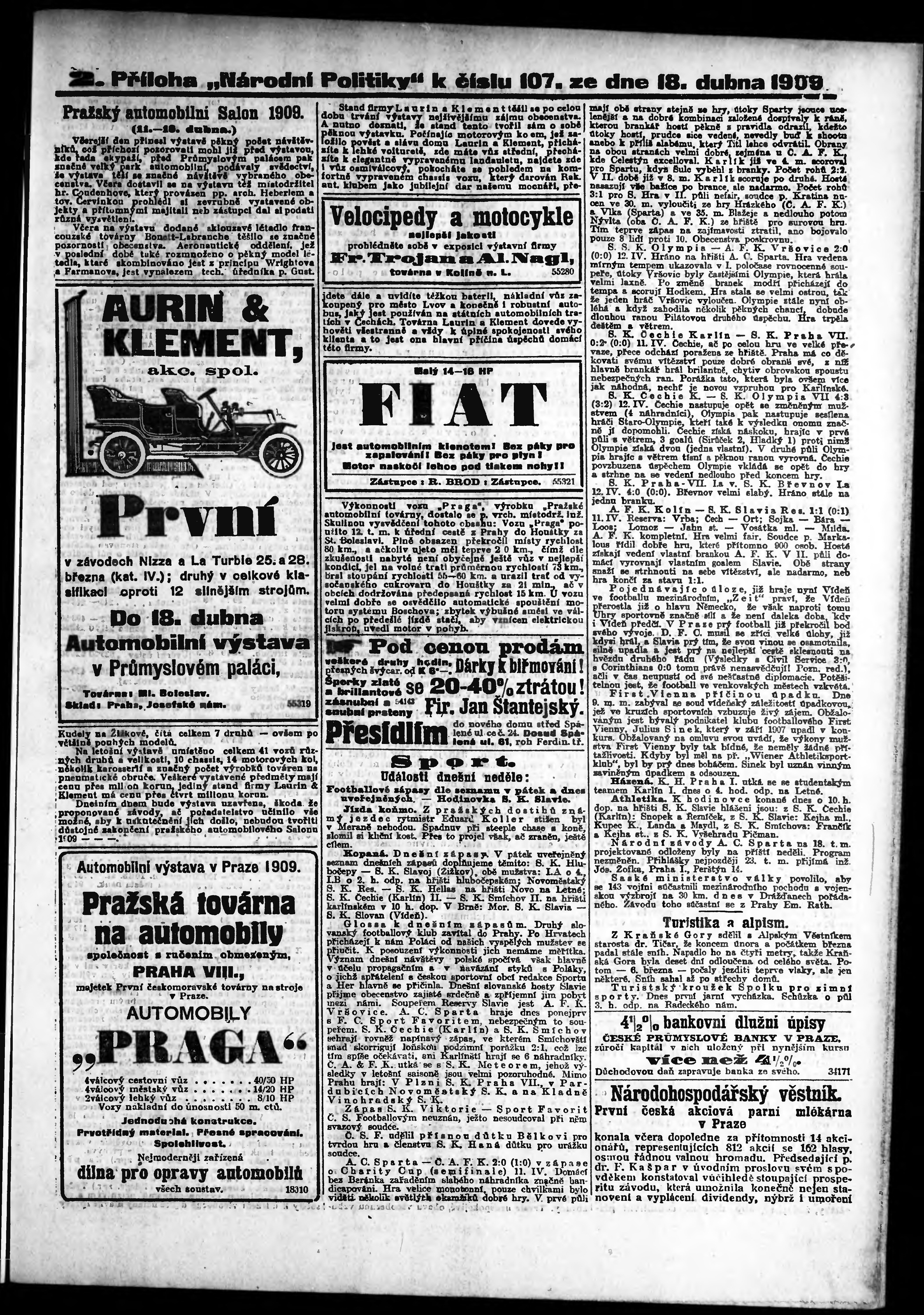 * Datum vydání výtisku: 18.4.1909 Číslo výtisku: 107 Typ výtisku: příloha Poznámky k výtisku: 2. příloha;