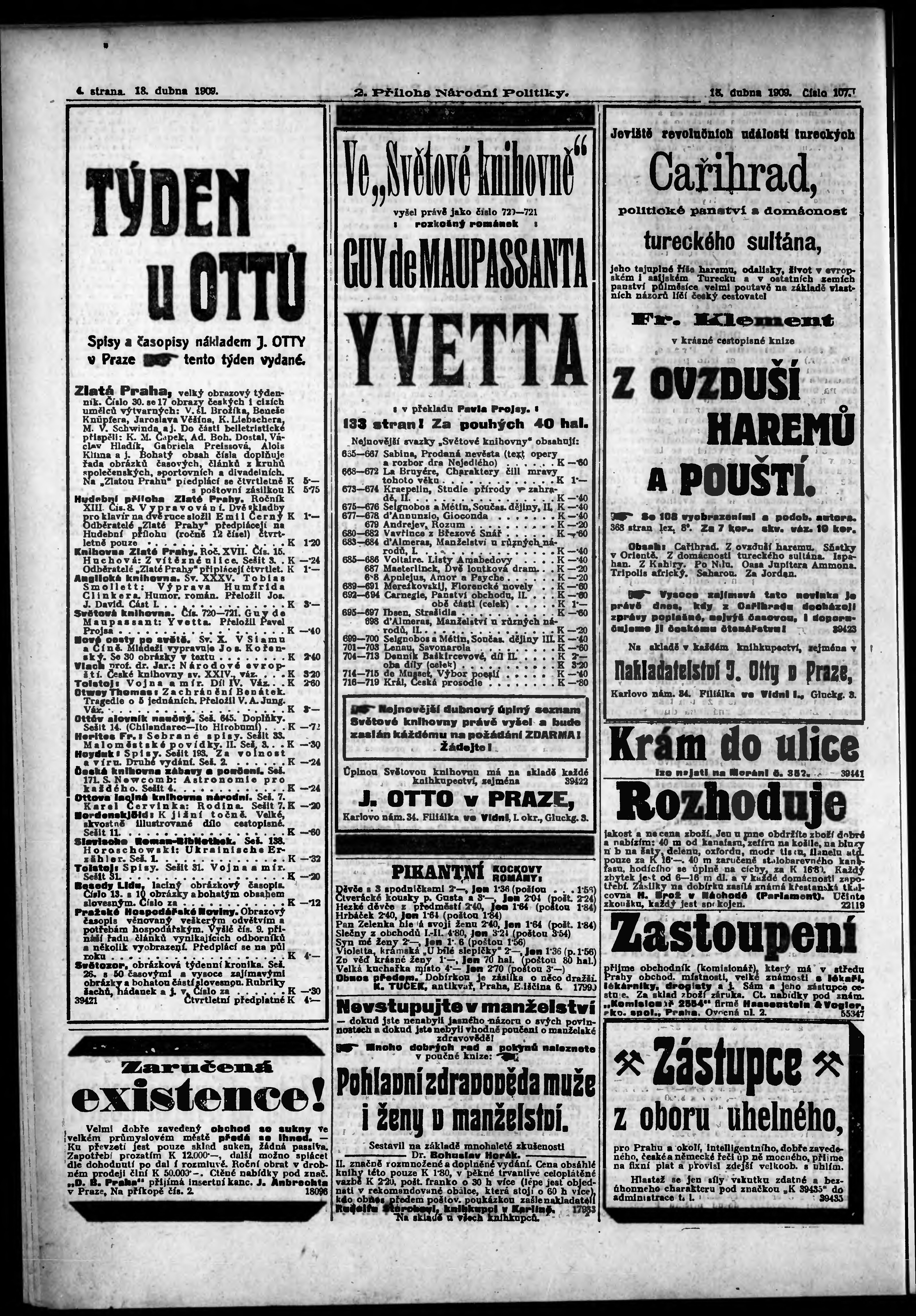 * Datum vydání výtisku: 18.4.1909 Číslo výtisku: 107 Typ výtisku: příloha Poznámky k výtisku: 2. příloha;