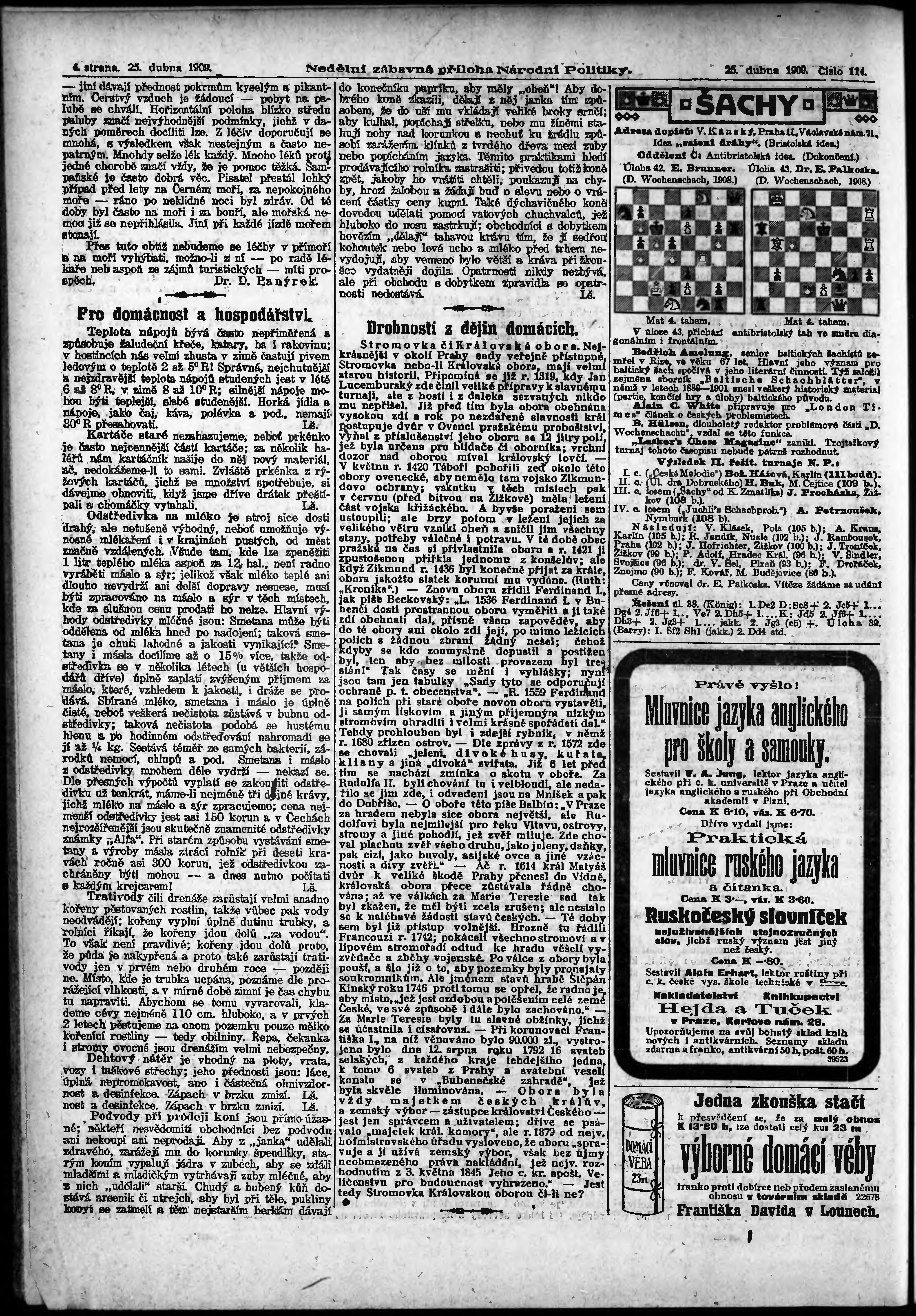 * Datum vydání výtisku: 25.4.1909 Číslo výtisku: 114 Typ výtisku: příloha