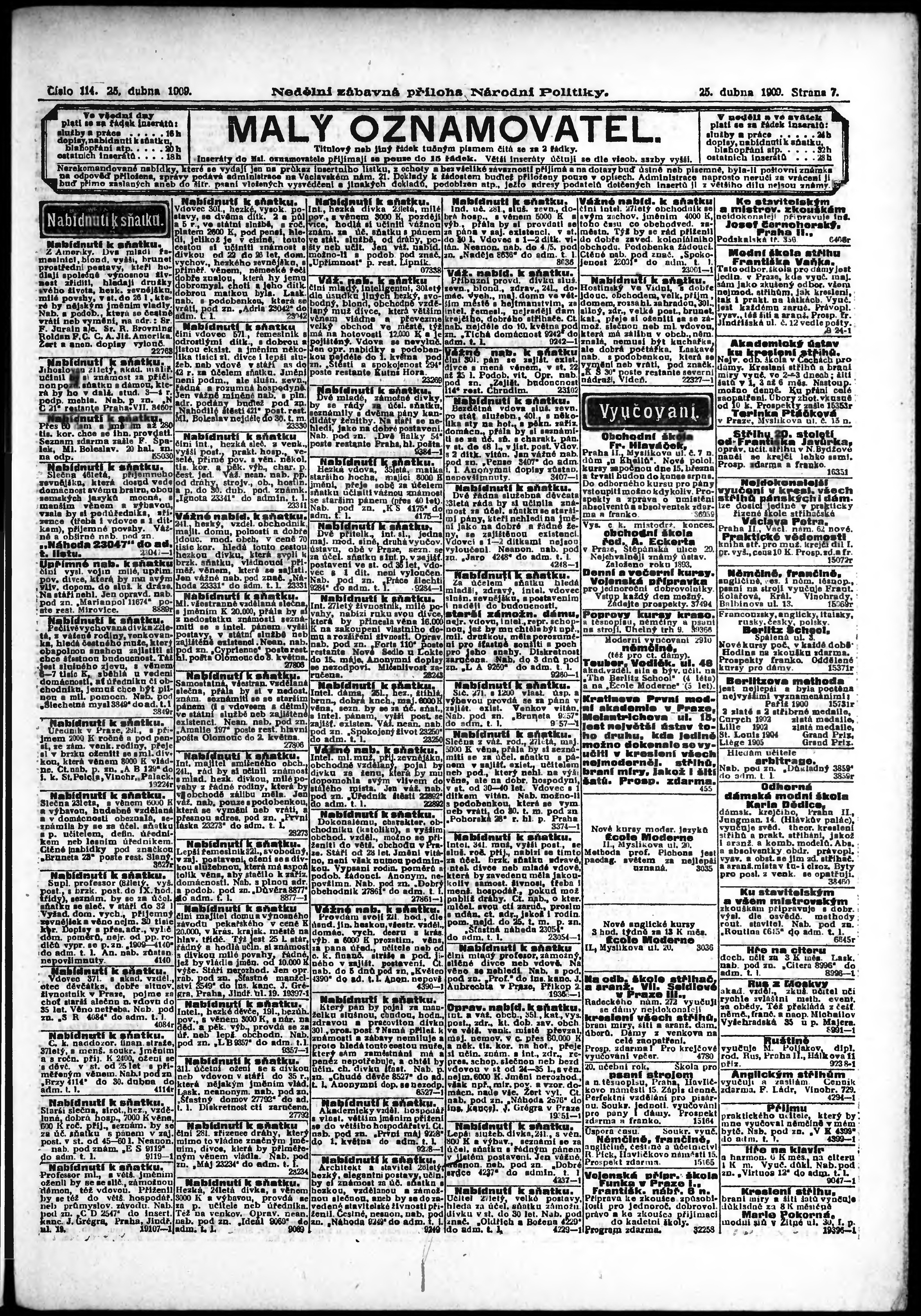 * Datum vydání výtisku: 25.4.1909 Číslo výtisku: 114 Typ výtisku: příloha