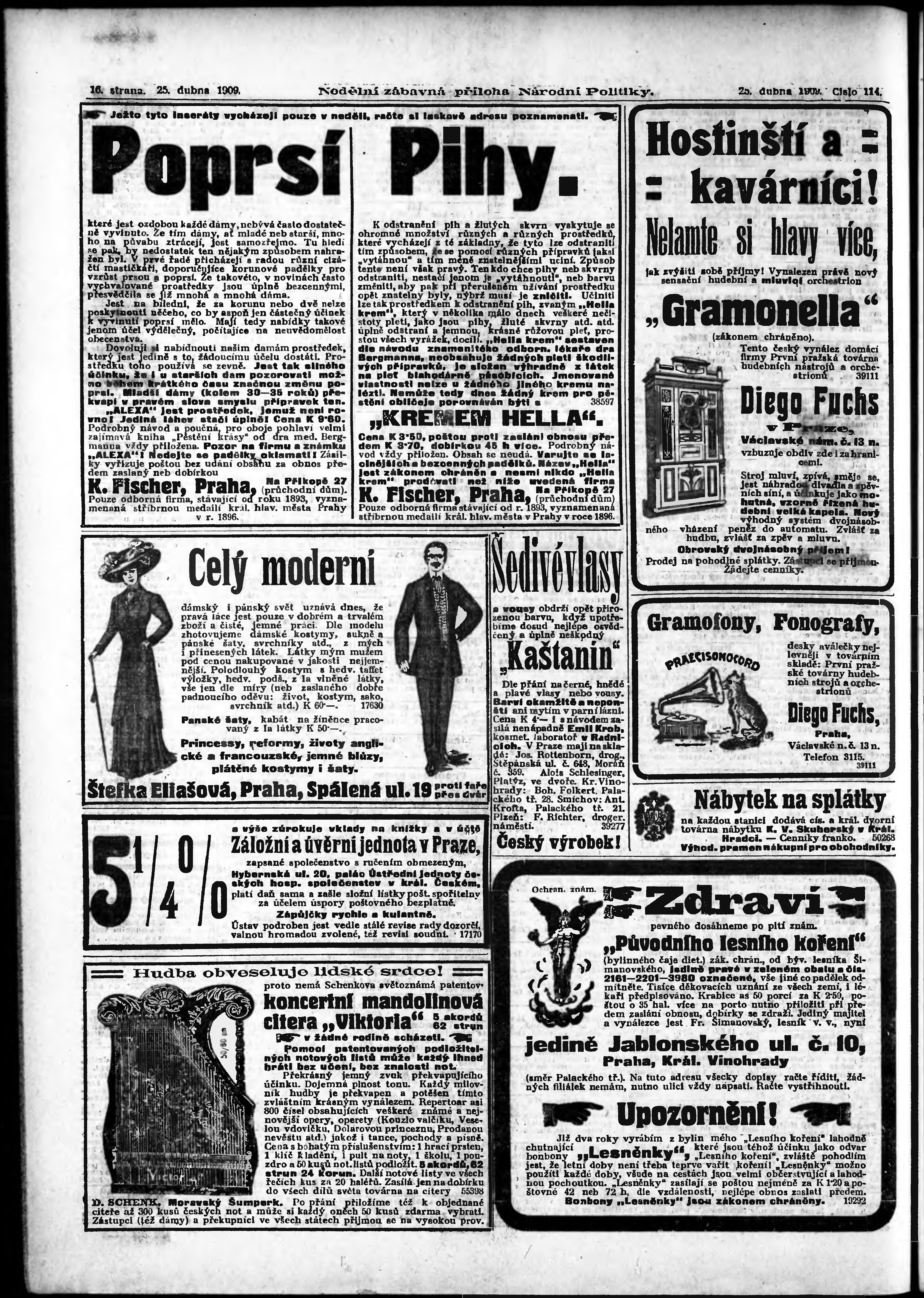 * Datum vydání výtisku: 25.4.1909 Číslo výtisku: 114 Typ výtisku: příloha