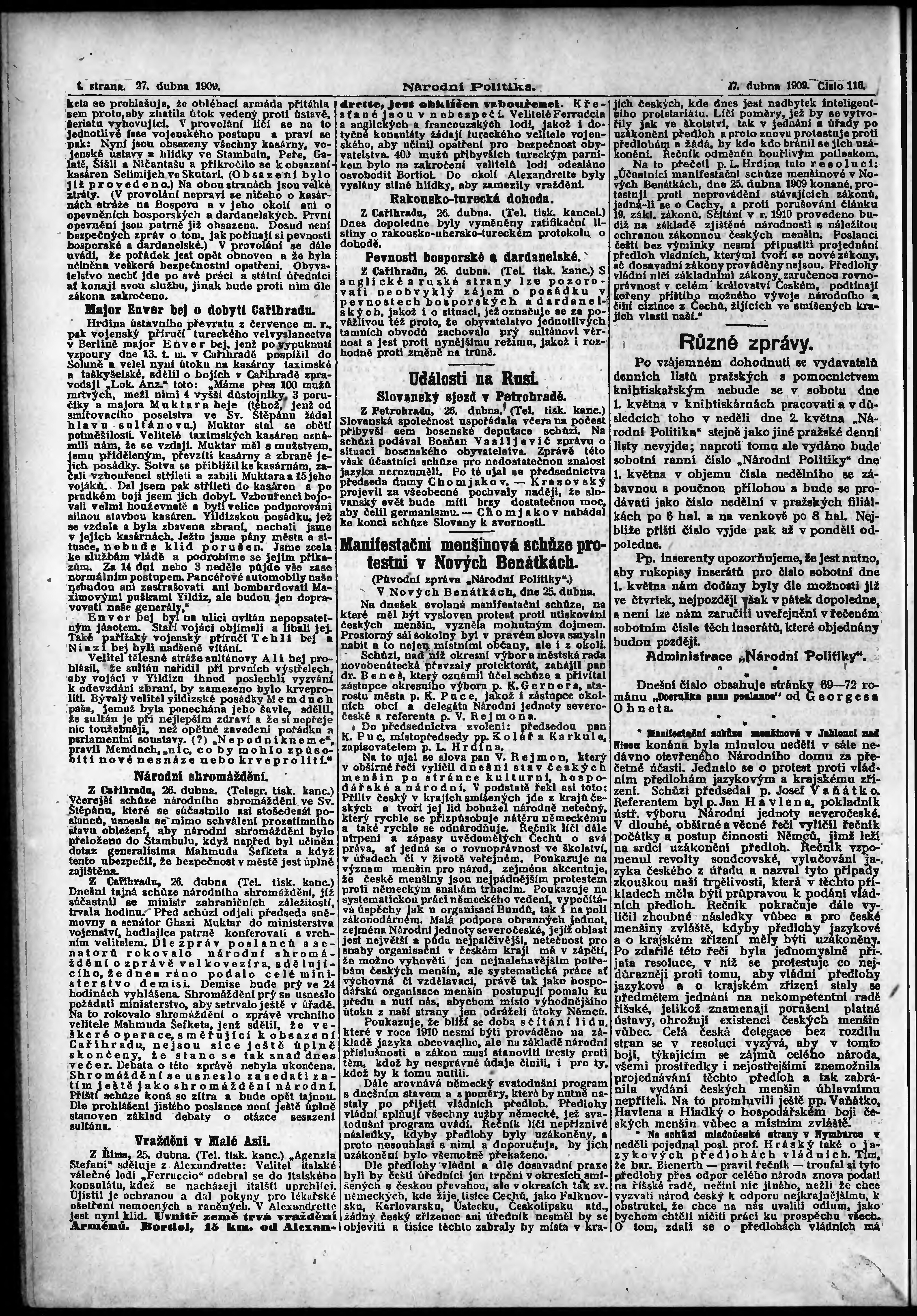 * Datum vydání výtisku: 27.4.1909 Číslo výtisku: 116