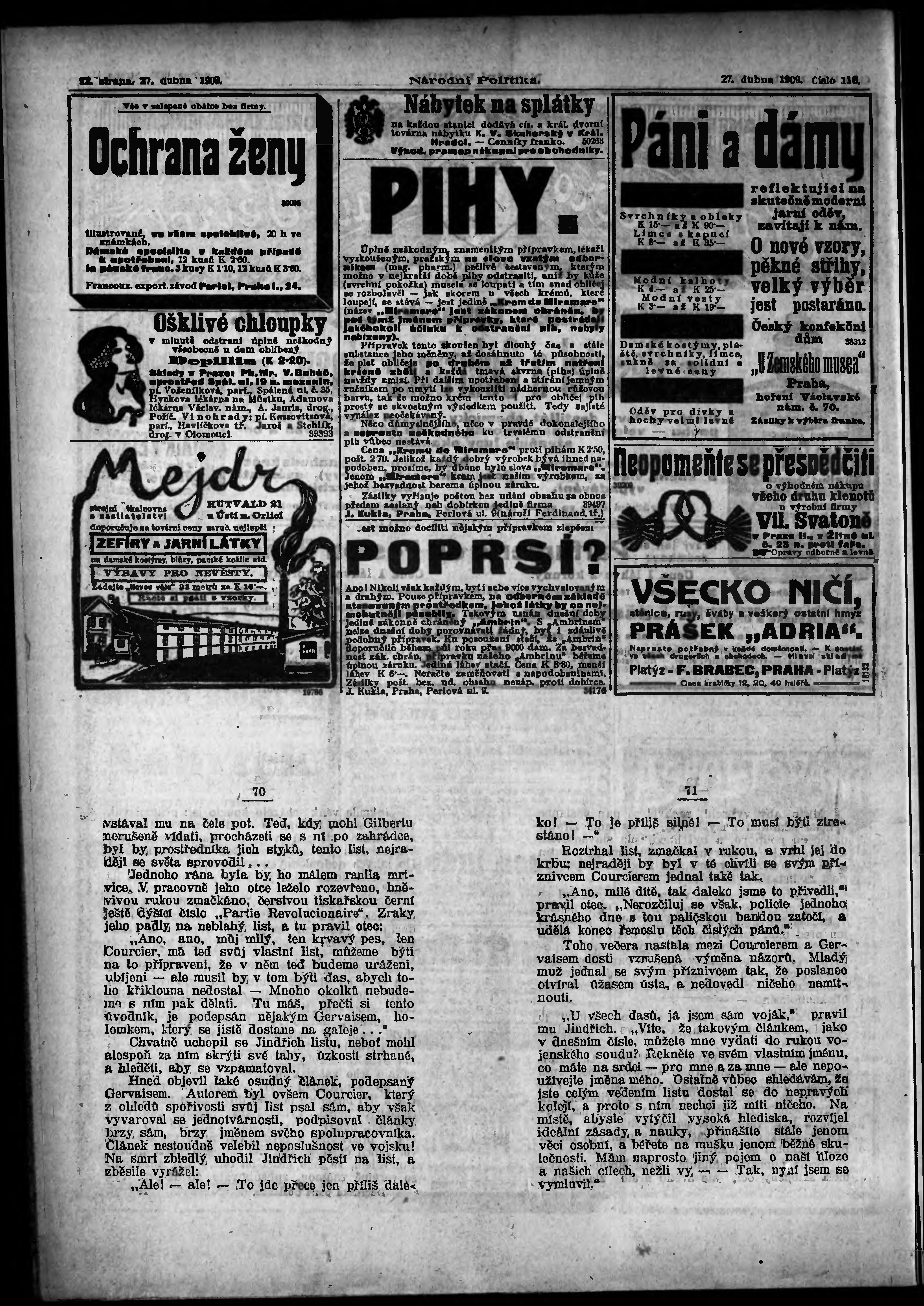 * Datum vydání výtisku: 27.4.1909 Číslo výtisku: 116