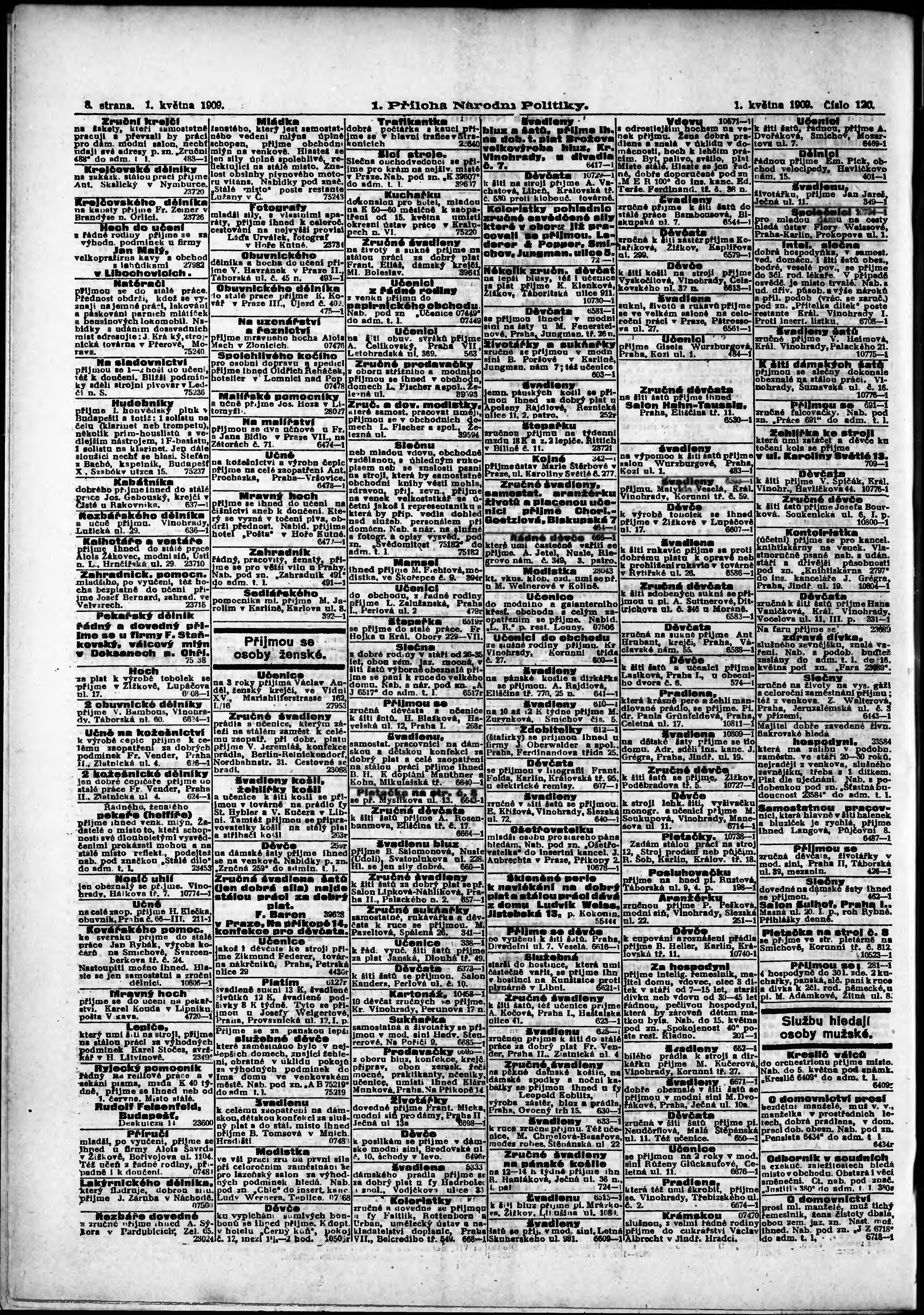 * Datum vydání výtisku: 1.5.1909 Číslo výtisku: 120 Typ výtisku: příloha Poznámky k výtisku: 1. příloha;