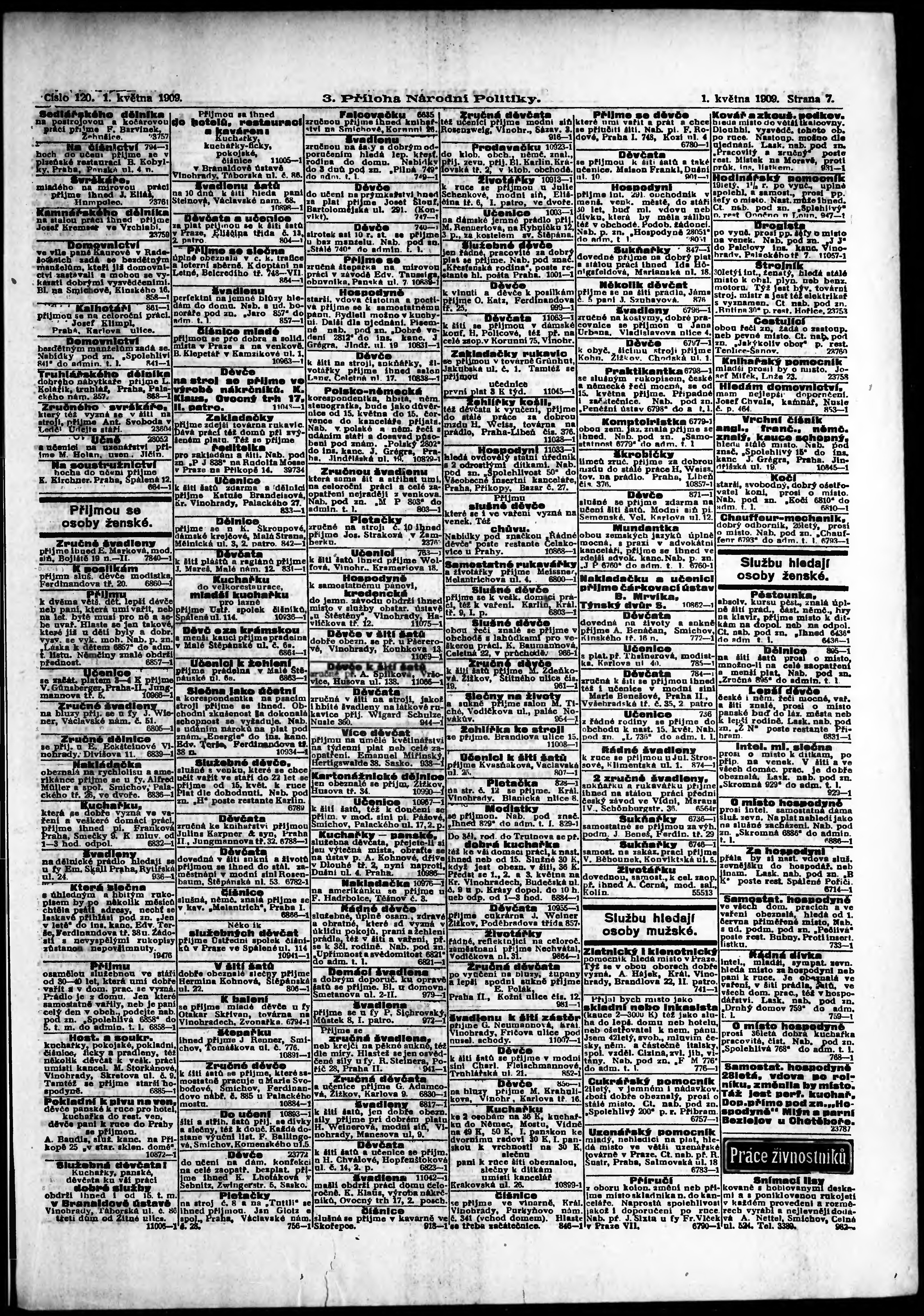 * Datum vydání výtisku: 1.5.1909 Číslo výtisku: 120 Typ výtisku: příloha Poznámky k výtisku: 3. příloha;