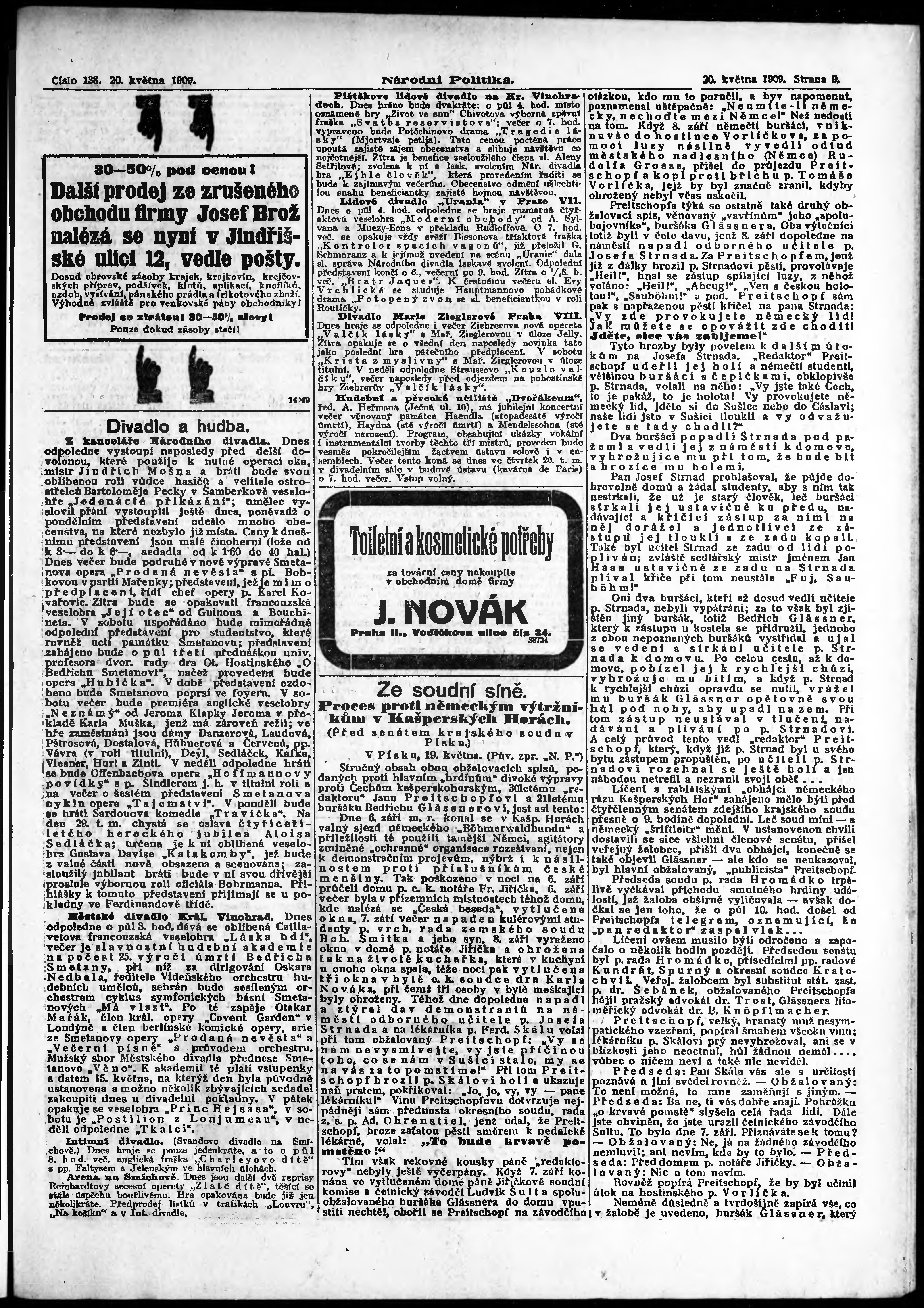 * Datum vydání výtisku: 20.5.1909 Číslo výtisku: 138