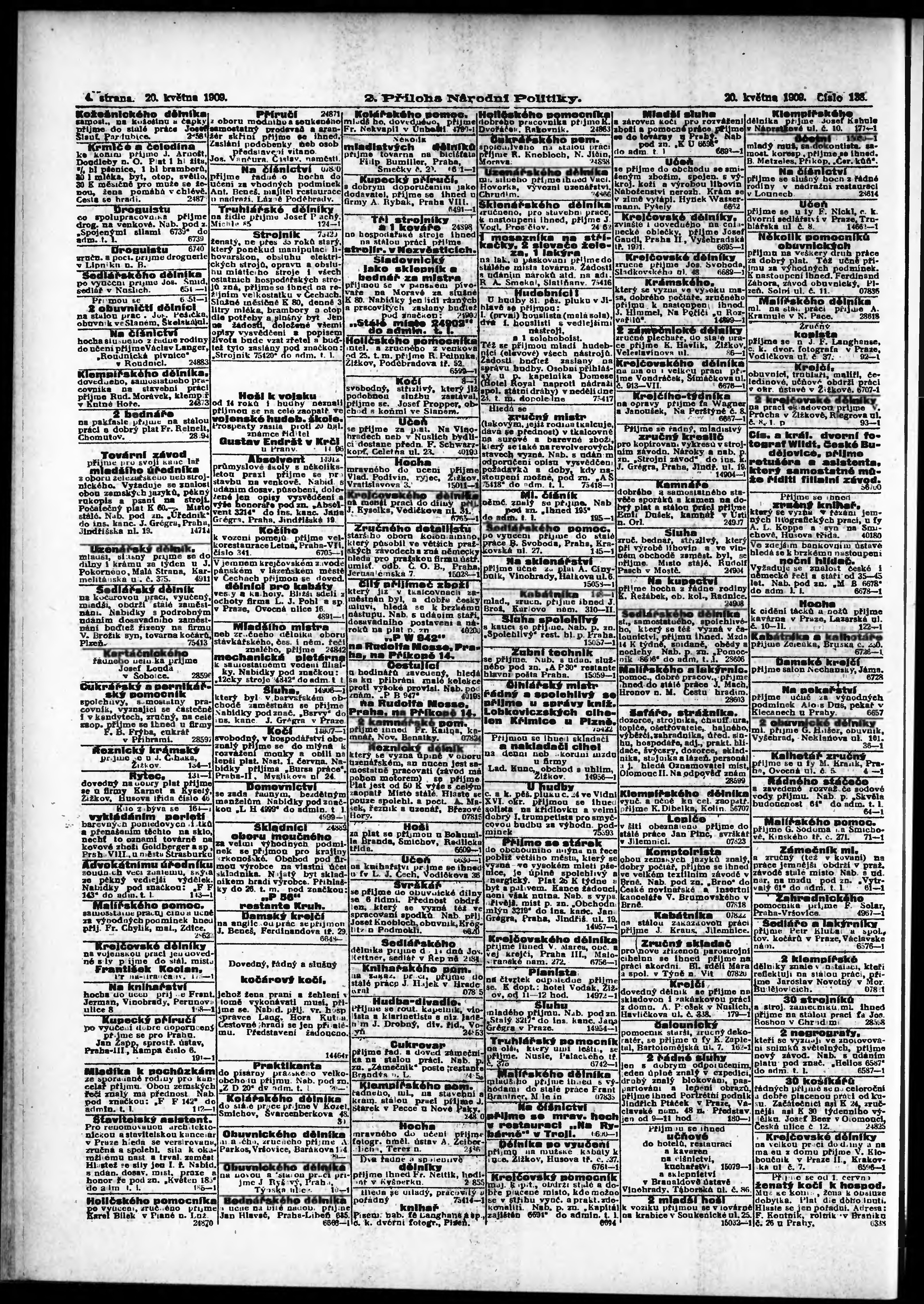 * Datum vydání výtisku: 20.5.1909 Číslo výtisku: 138 Typ výtisku: příloha Poznámky k výtisku: 2. příloha;