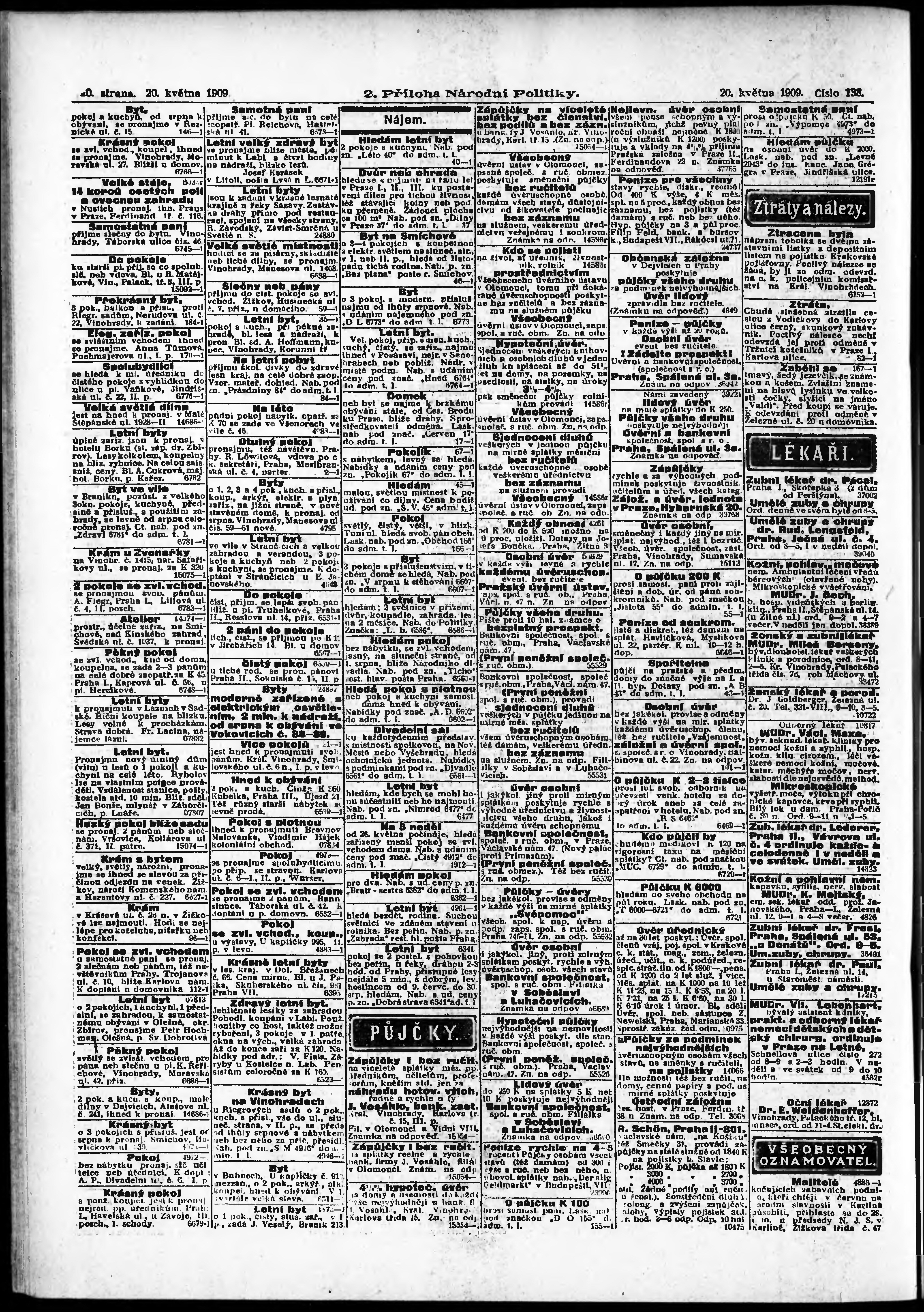 * Datum vydání výtisku: 20.5.1909 Číslo výtisku: 138 Typ výtisku: příloha Poznámky k výtisku: 2. příloha;