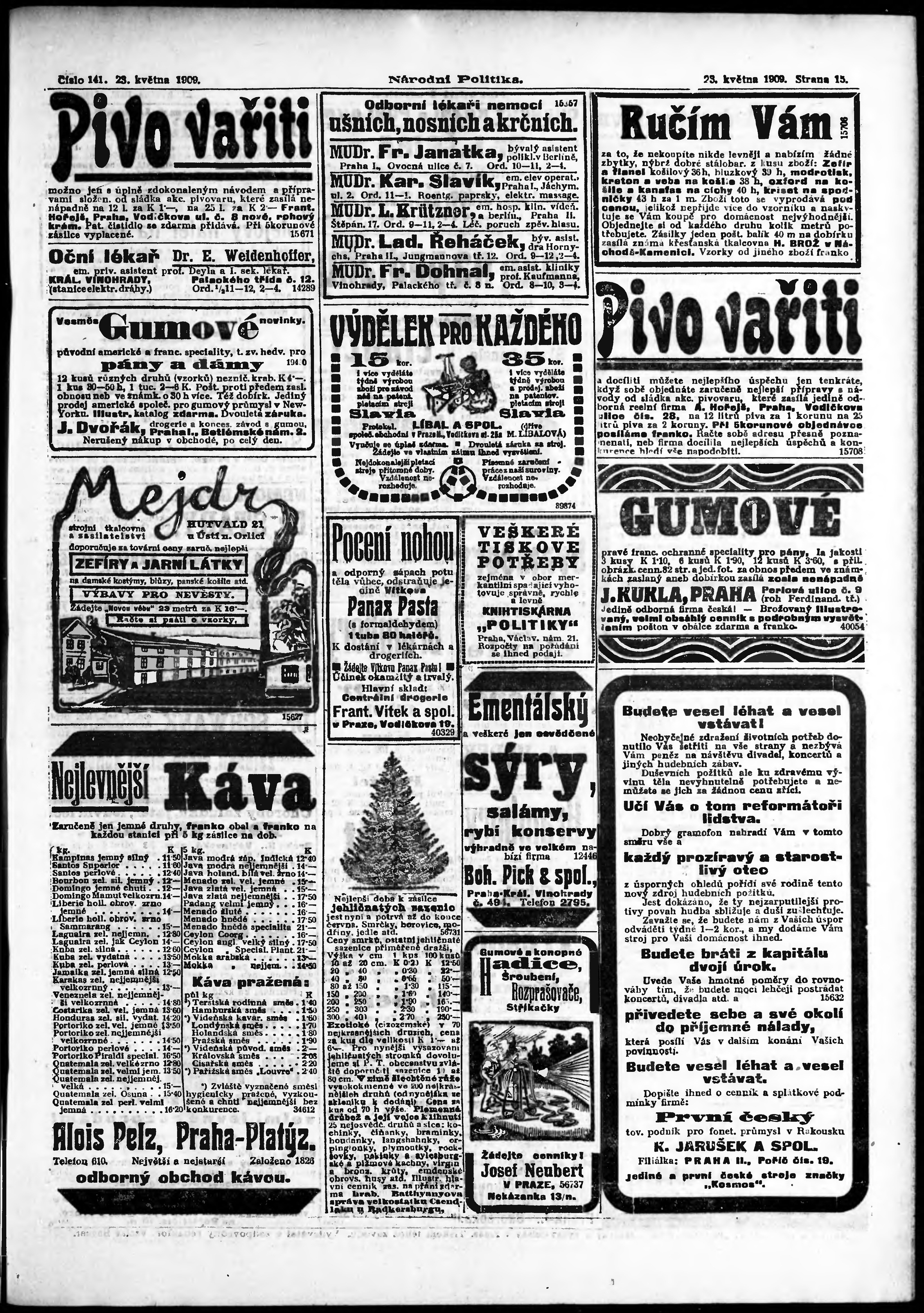 * Datum vydání výtisku: 23.5.1909 Číslo výtisku: 141