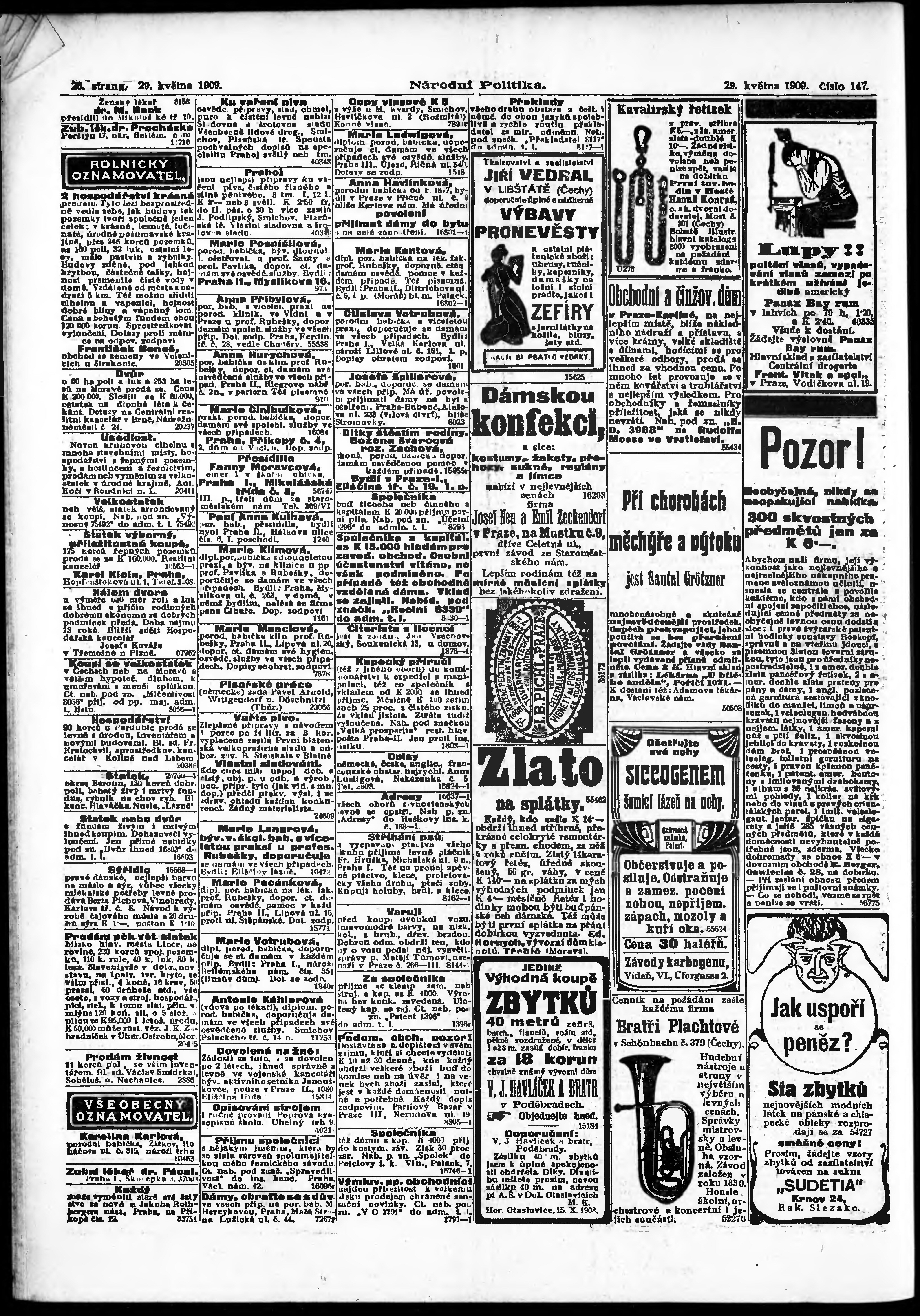 * Datum vydání výtisku: 29.5.1909 Číslo výtisku: 147