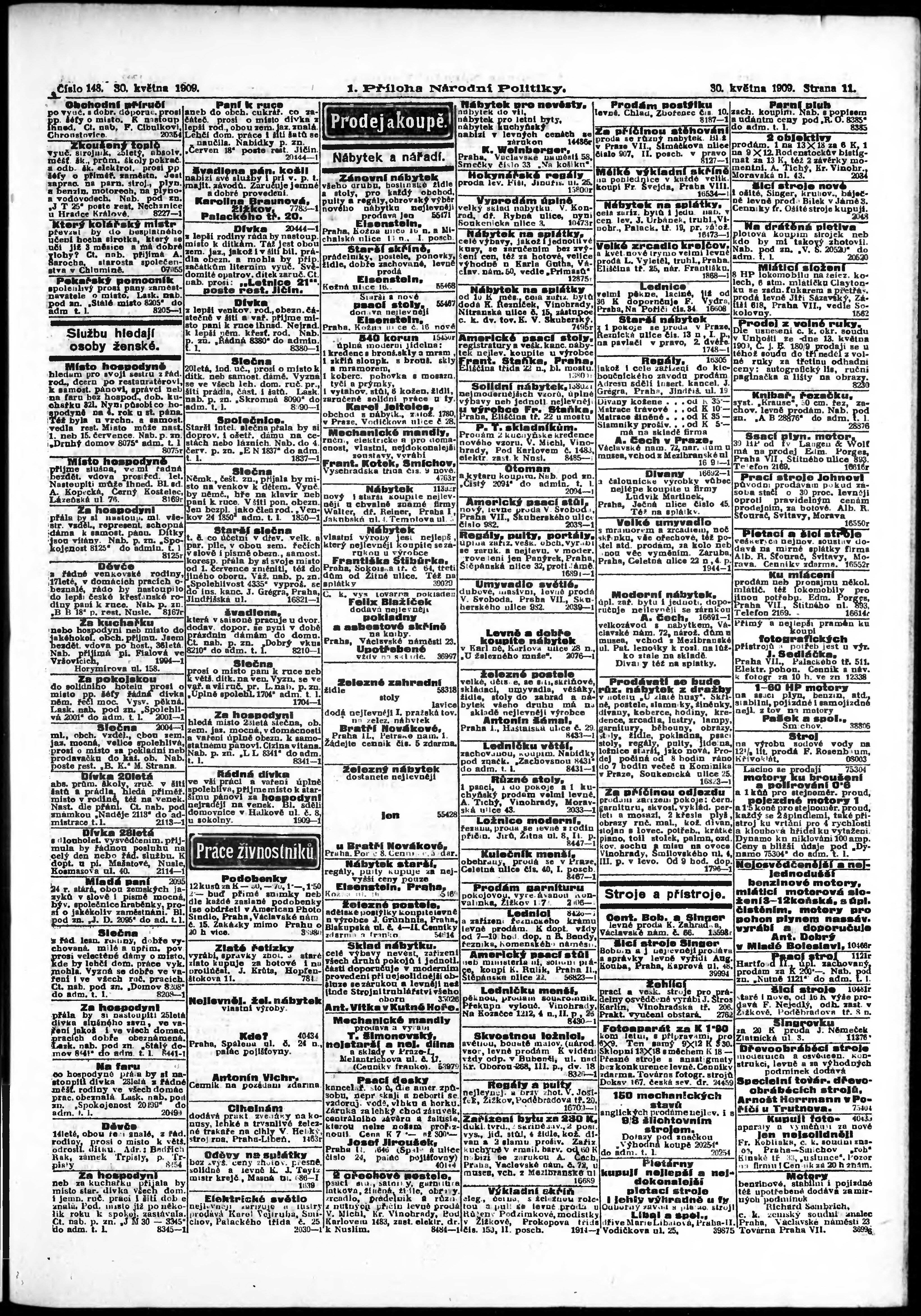 * Datum vydání výtisku: 30.5.1909 Číslo výtisku: 148 Typ výtisku: příloha Poznámky k výtisku: 1. příloha;