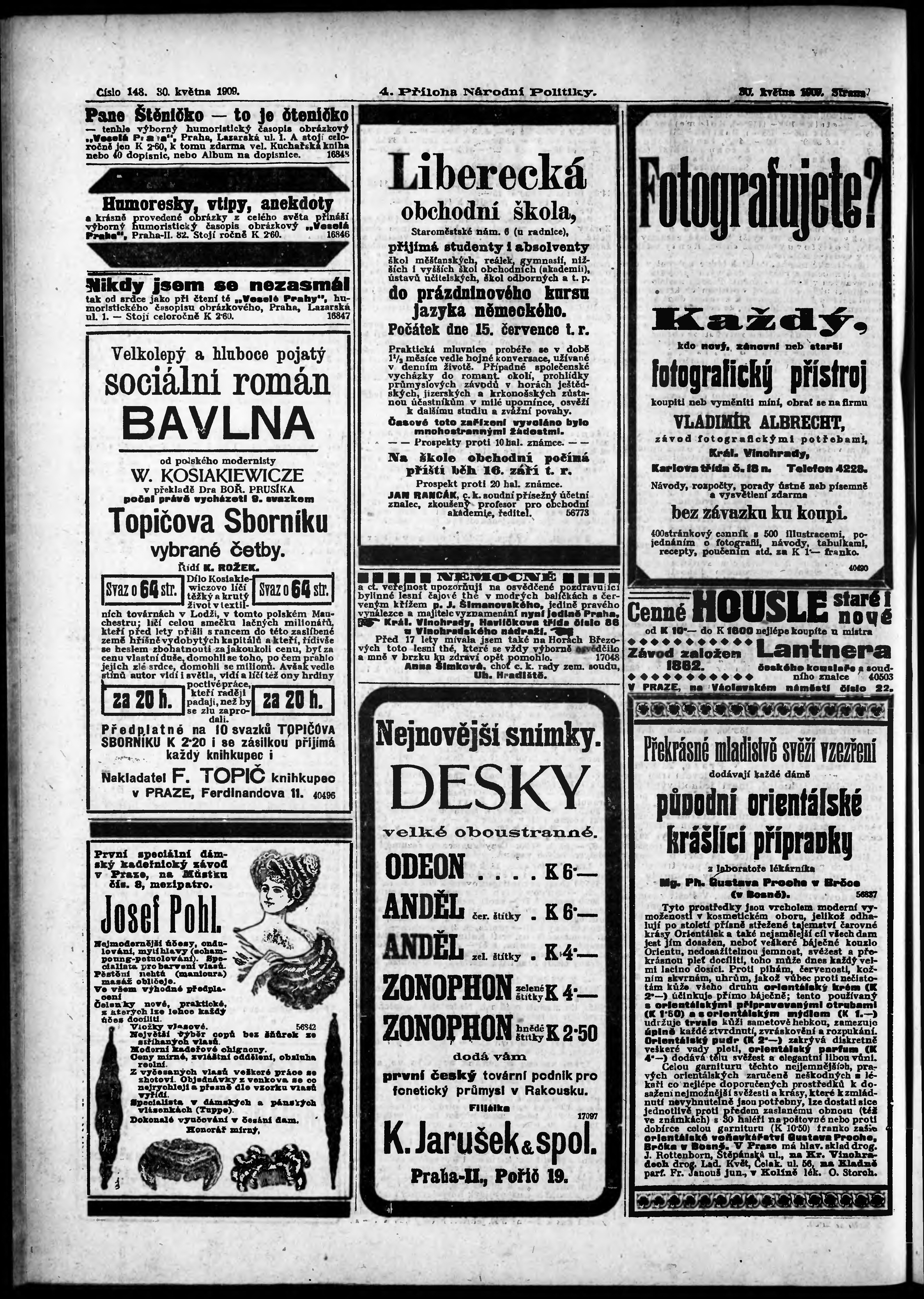 * Datum vydání výtisku: 30.5.1909 Číslo výtisku: 148 Typ výtisku: příloha Poznámky k výtisku: 4. příloha;