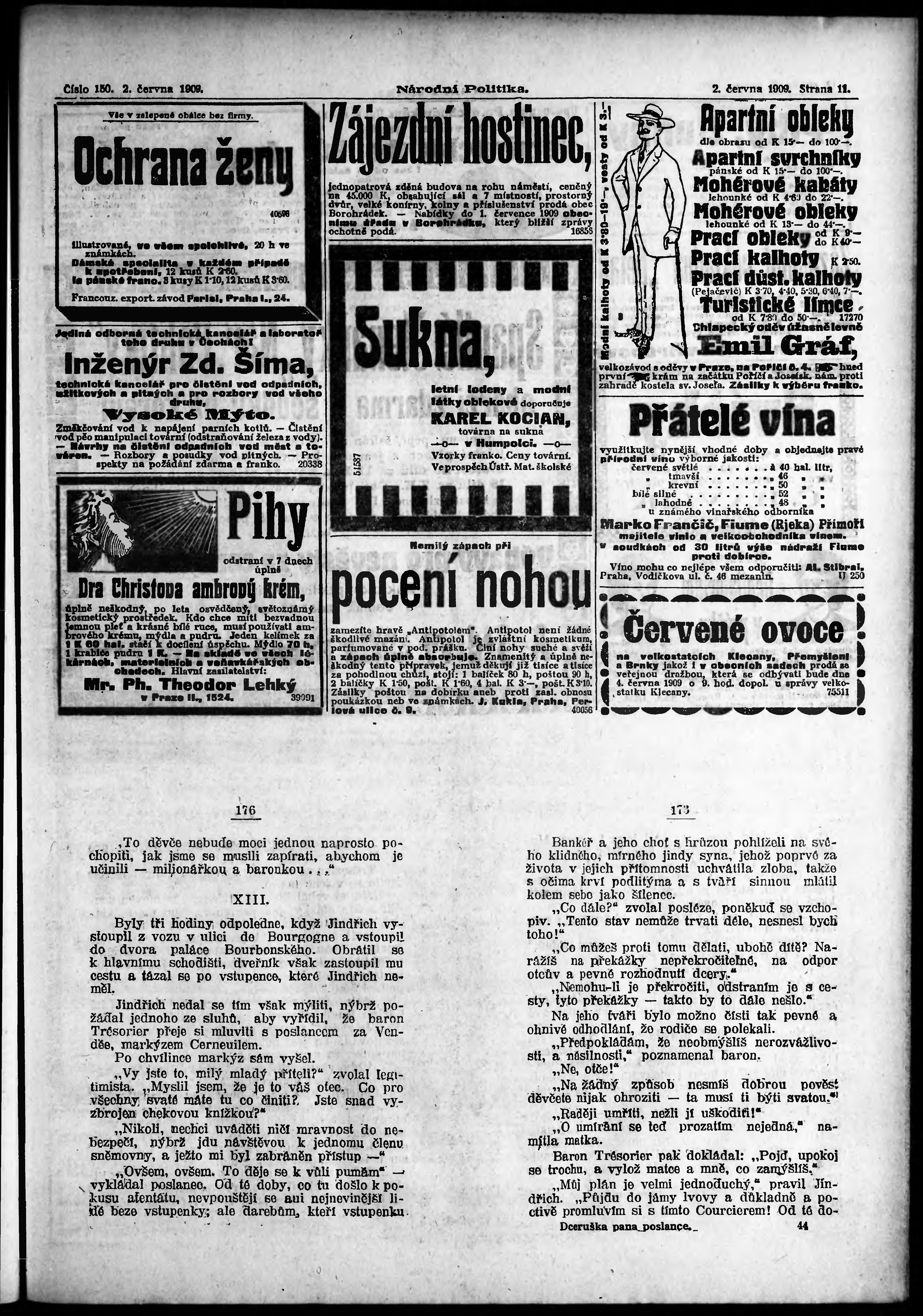 * Datum vydání výtisku: 2.6.1909 Číslo výtisku: 150