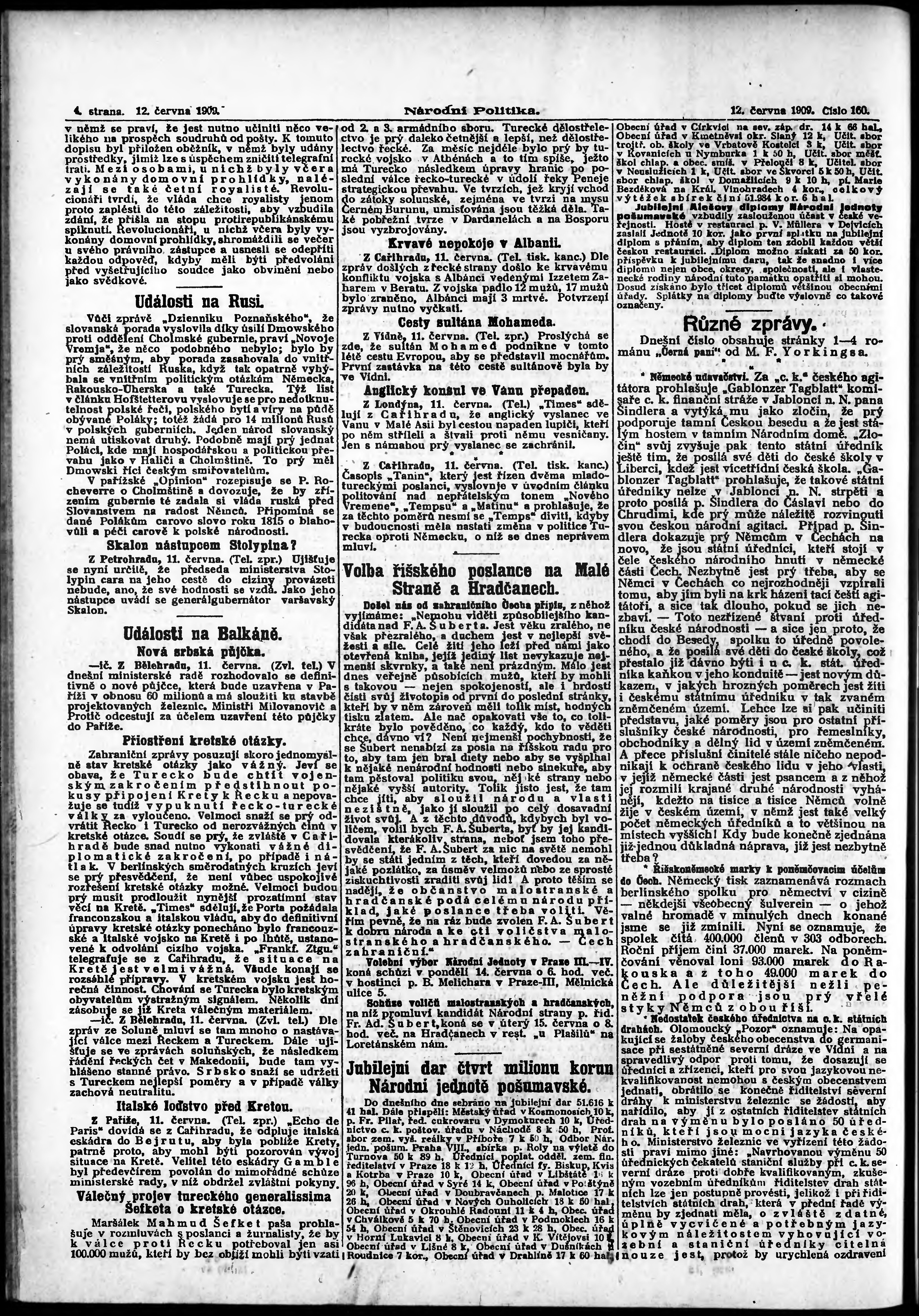 * Datum vydání výtisku: 12.6.1909 Číslo výtisku: 160