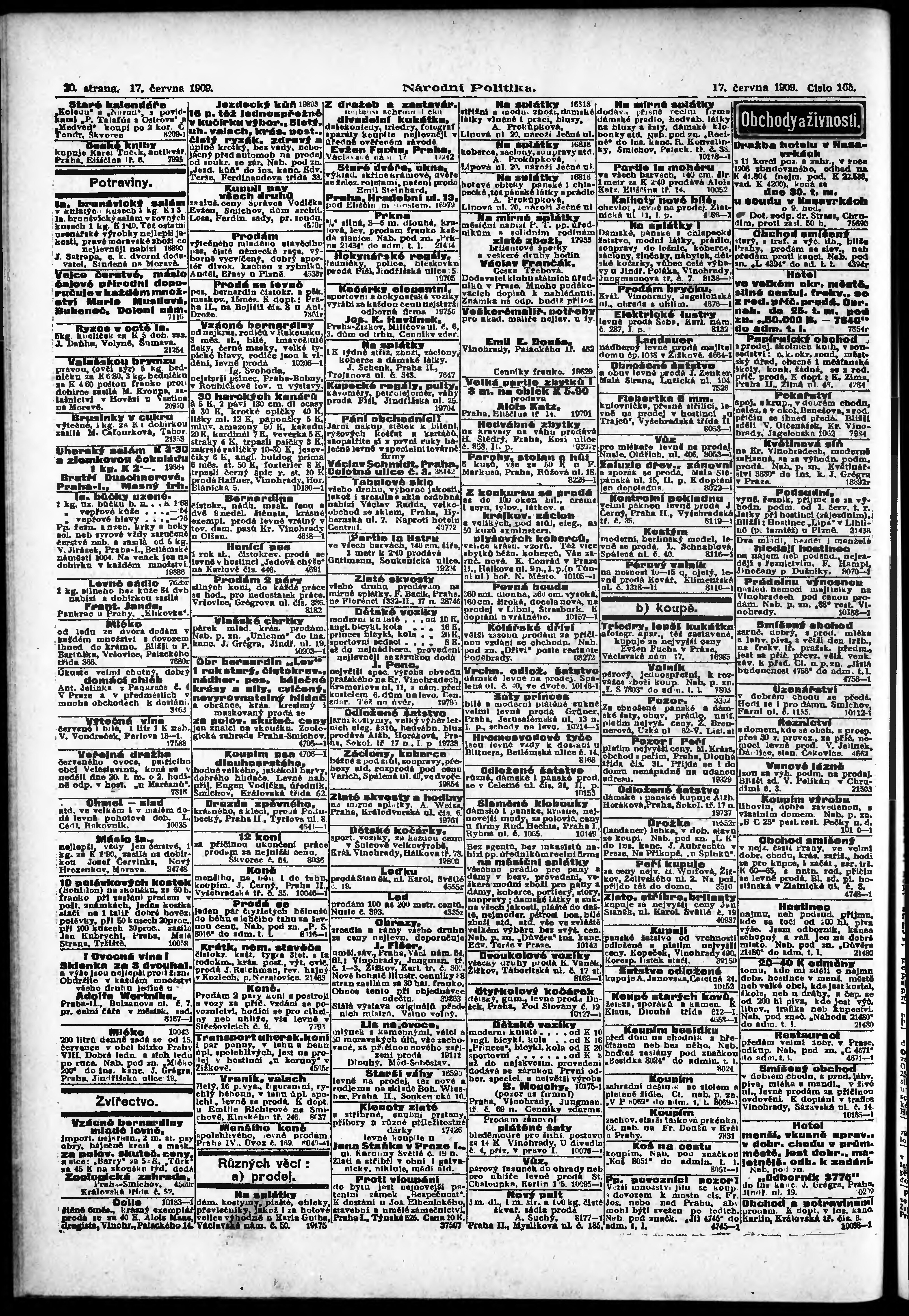 * Datum vydání výtisku: 17.6.1909 Číslo výtisku: 165