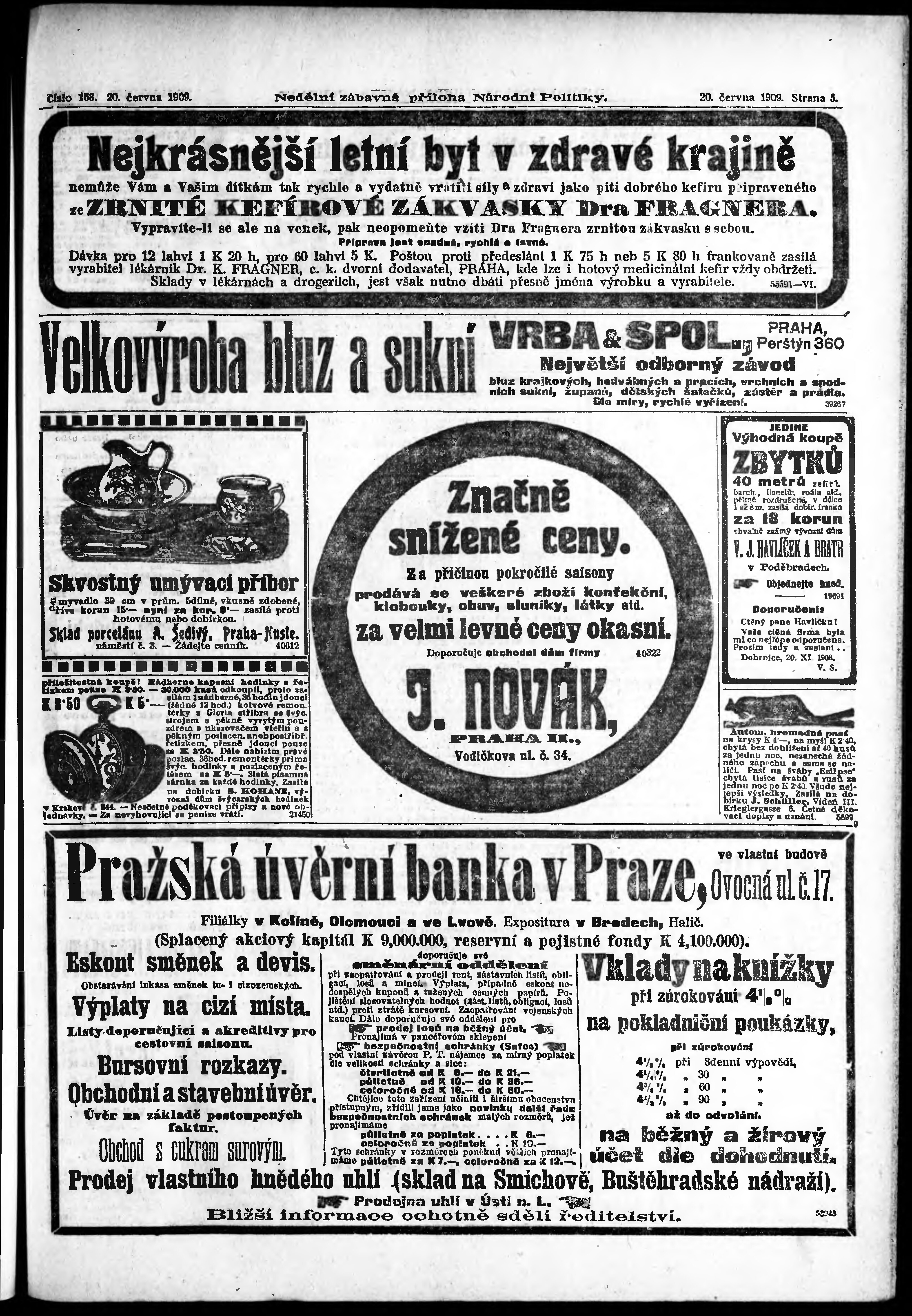 * Datum vydání výtisku: 20.6.1909 Číslo výtisku: 168 Typ výtisku: příloha