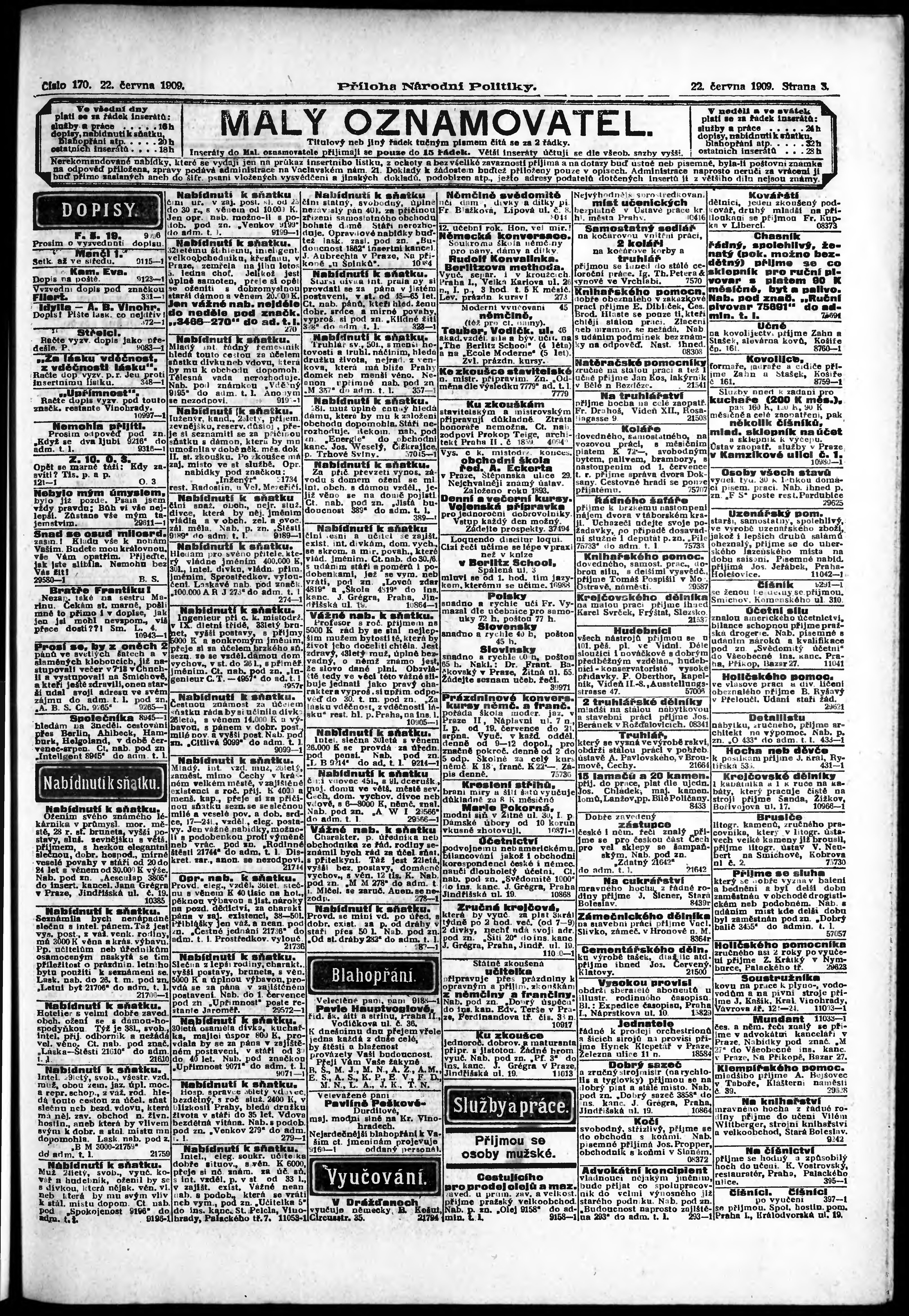* Datum vydání výtisku: 22.6.1909 Číslo výtisku: 170 Typ výtisku: příloha