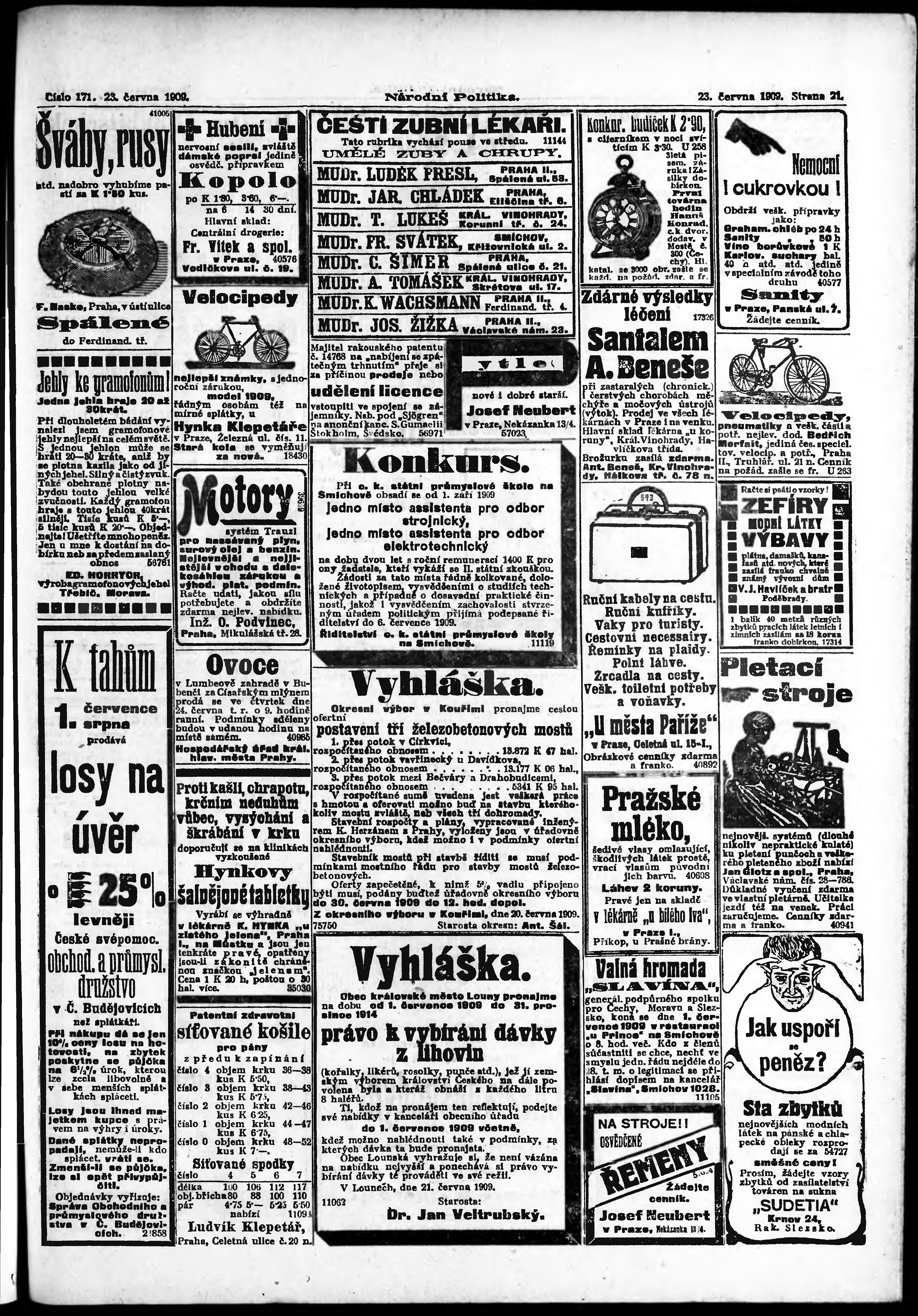 * Datum vydání výtisku: 23.6.1909 Číslo výtisku: 171