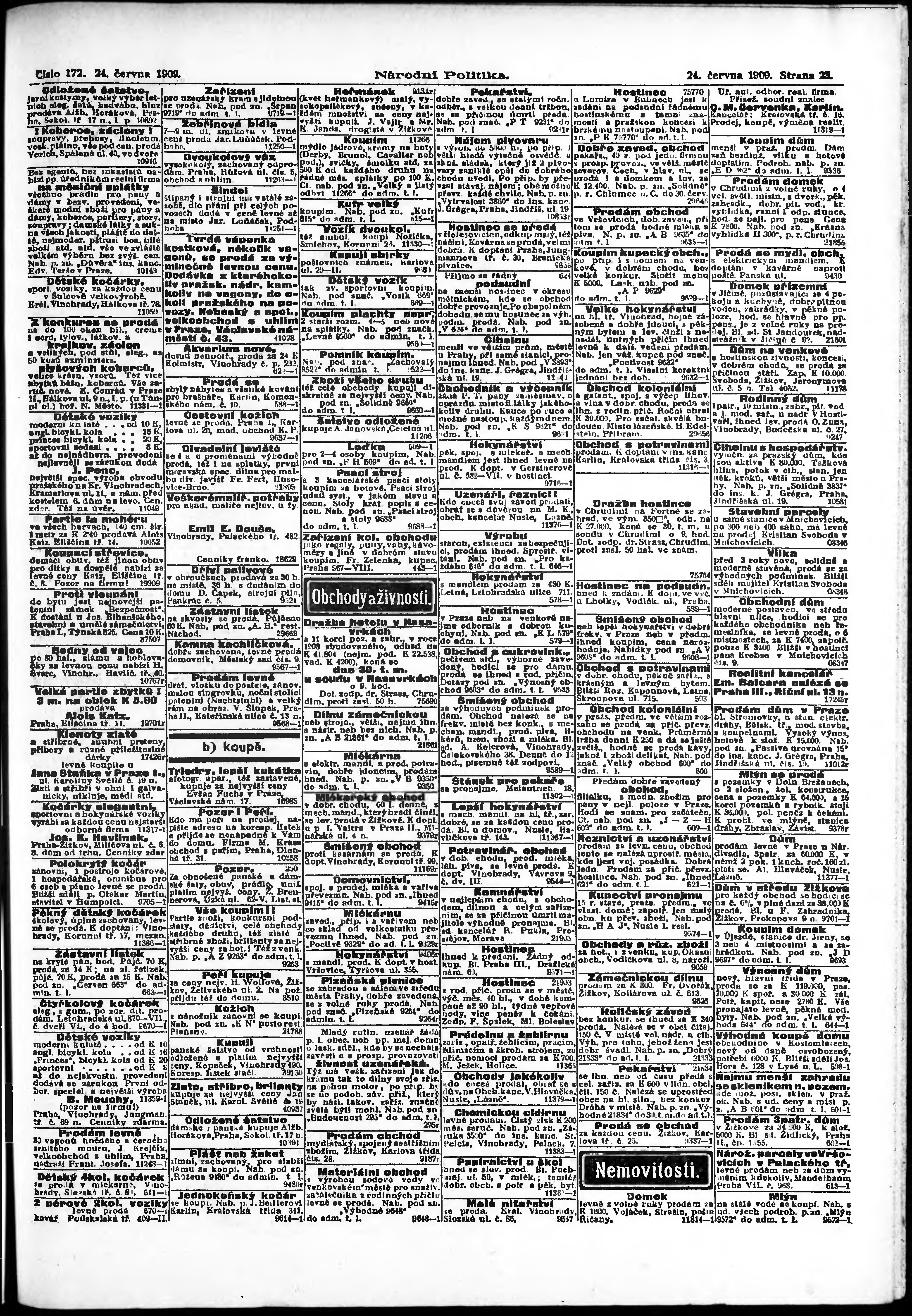 * Datum vydání výtisku: 24.6.1909 Číslo výtisku: 172