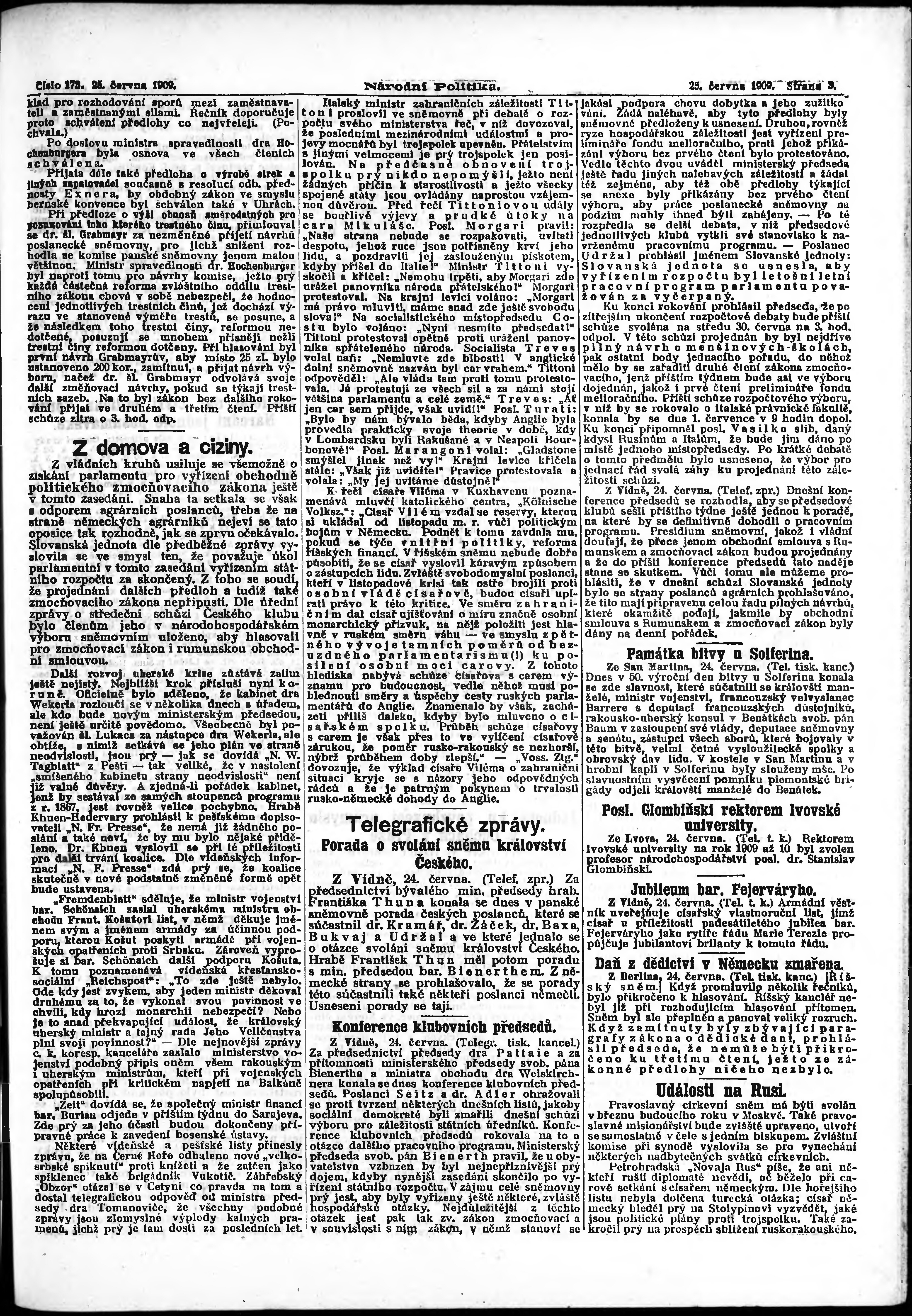 * Datum vydání výtisku: 25.6.1909 Číslo výtisku: 173