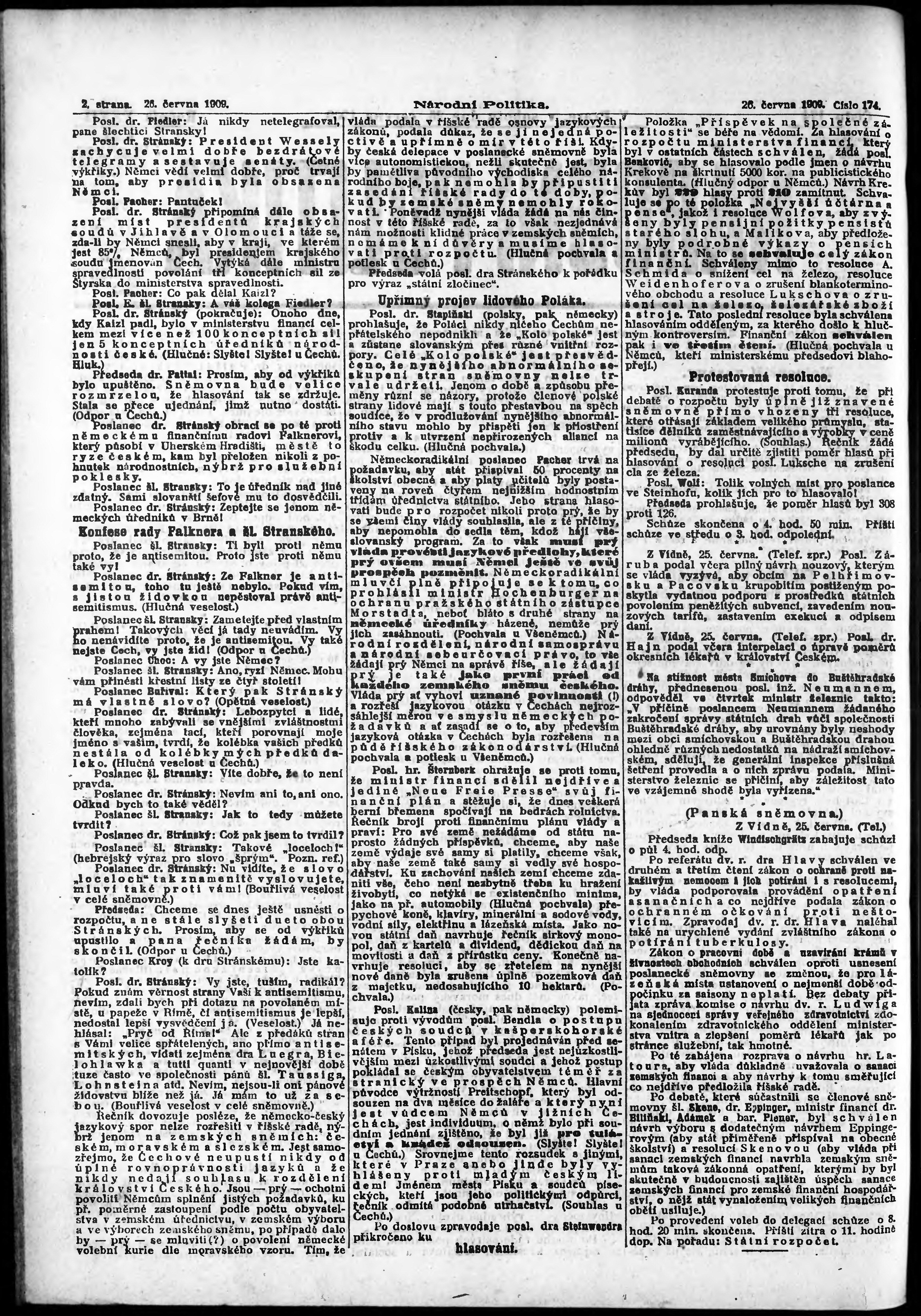 * Datum vydání výtisku: 26.6.1909 Číslo výtisku: 174
