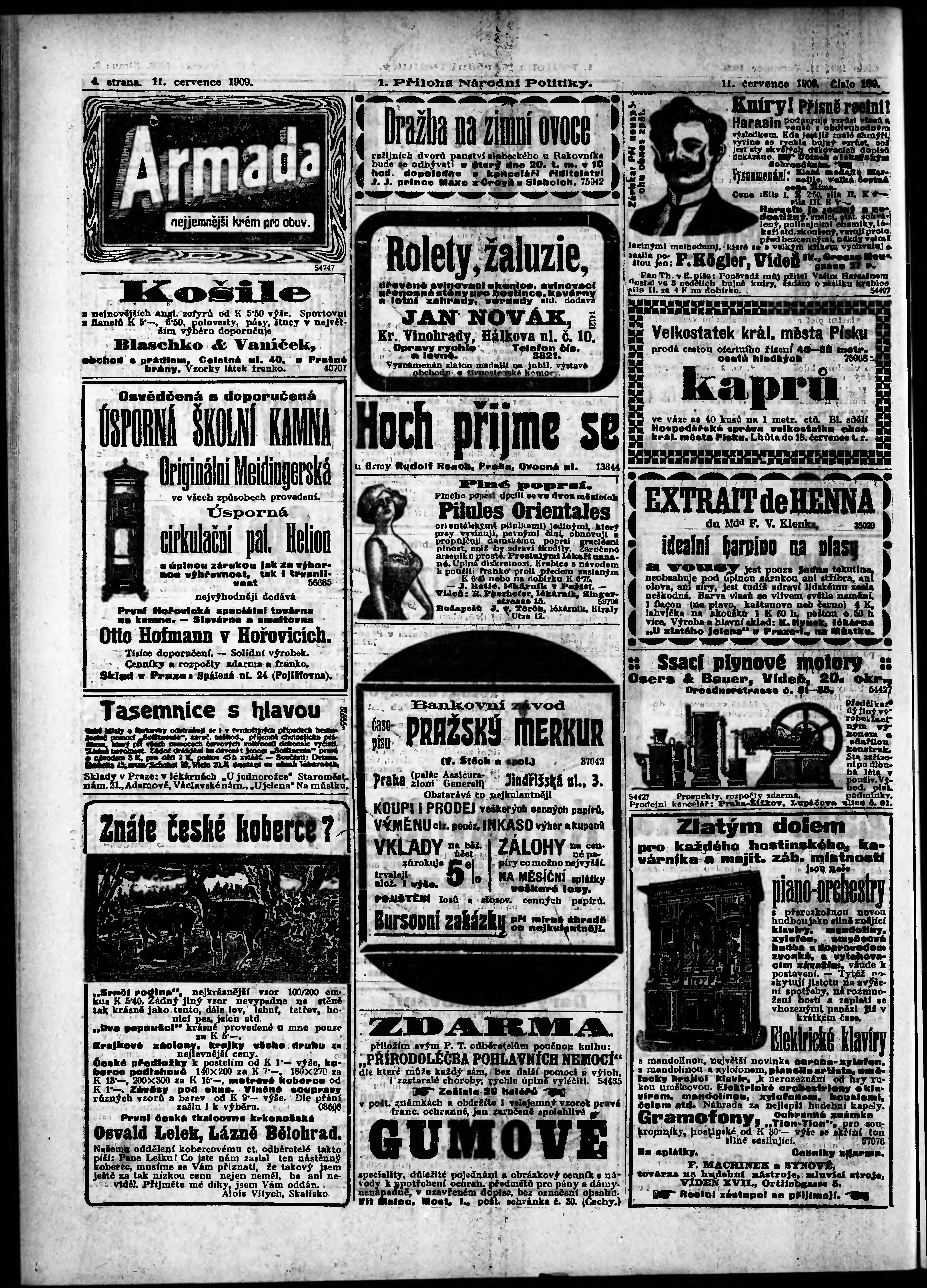 * Datum vydání výtisku: 11.7.1909 Číslo výtisku: 189 Typ výtisku: příloha Poznámky k výtisku: 1. příloha;
