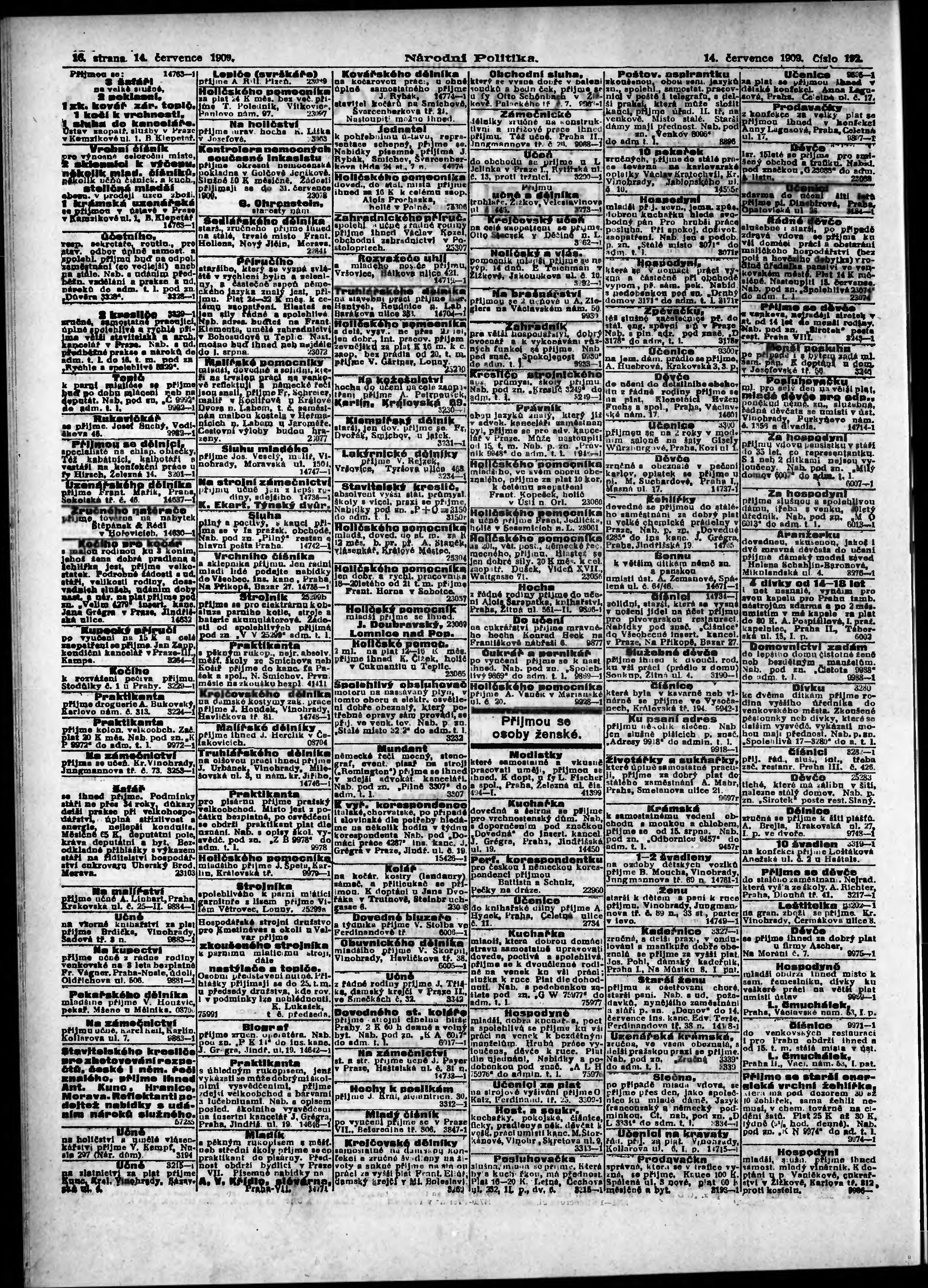 * Datum vydání výtisku: 14.7.1909 Číslo výtisku: 192