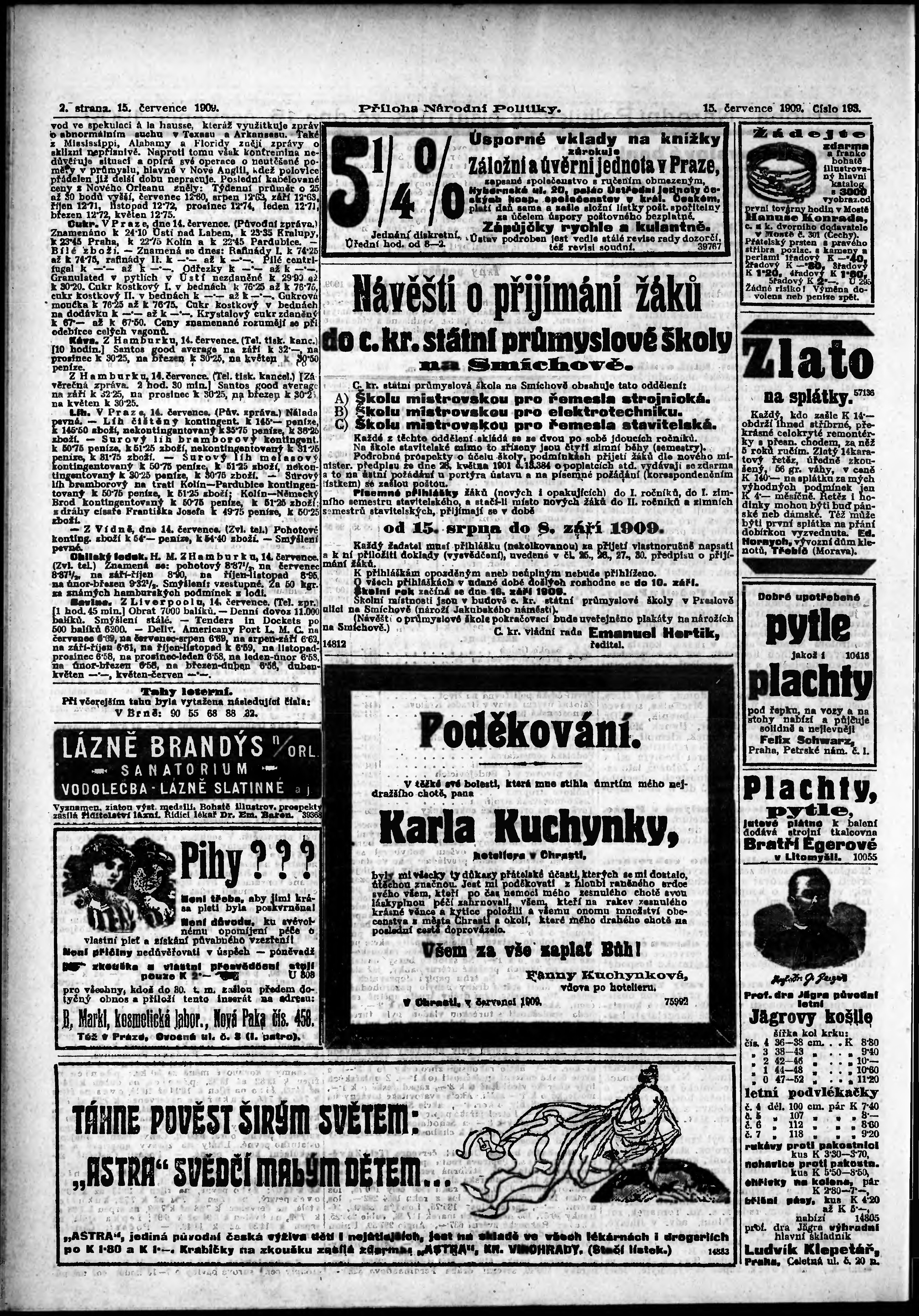 * Datum vydání výtisku: 15.7.1909 Číslo výtisku: 193 Typ výtisku: příloha